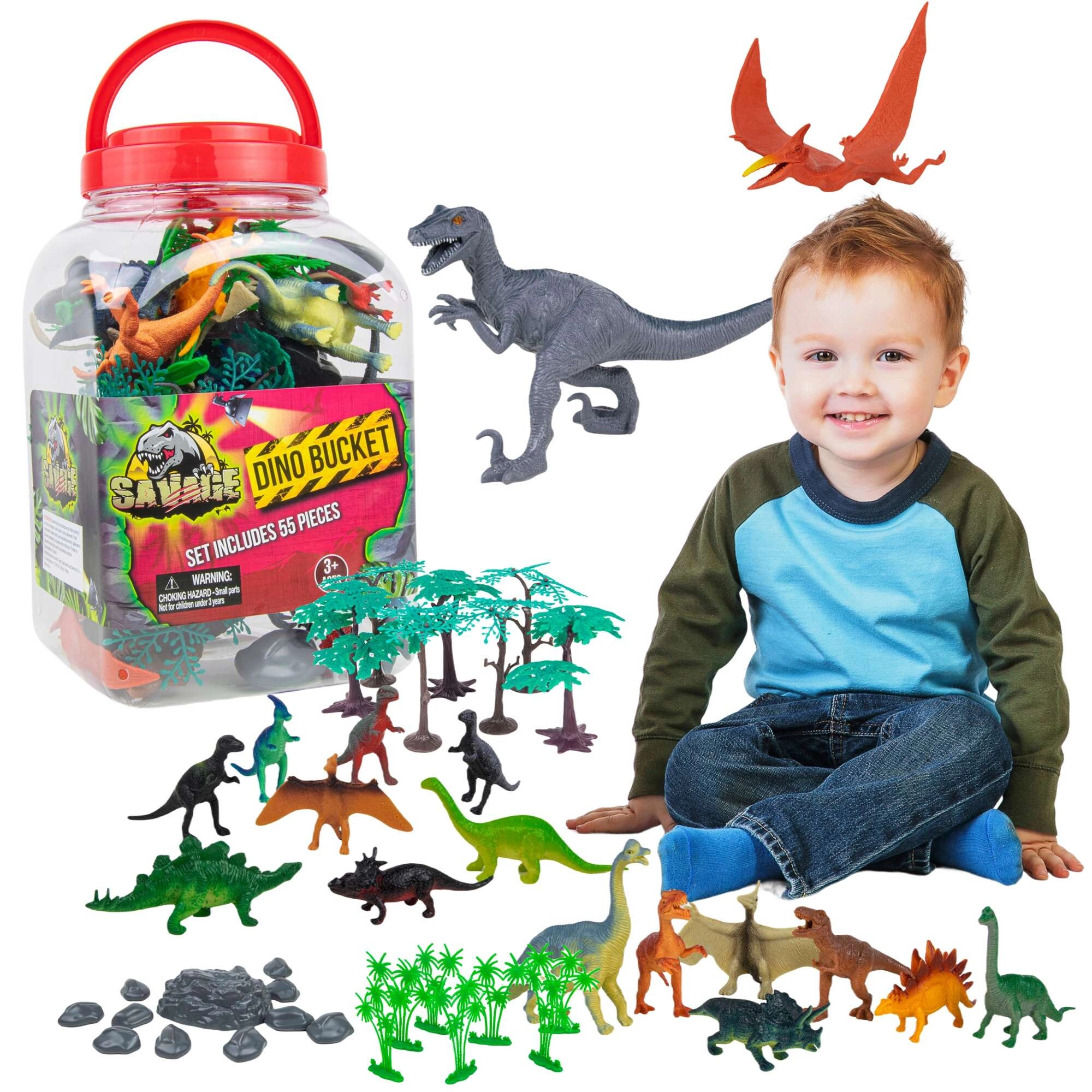 Sve je pregledno pohranjeno u kanti s poklopcem i ručkom, pa je set idealan i za dom i za putovanja. Savršeno kao poklon za djecu od 3 godine – zabava na duge sate i odlična osnova za stvaranje vlastitog prapovijesnog svijeta.