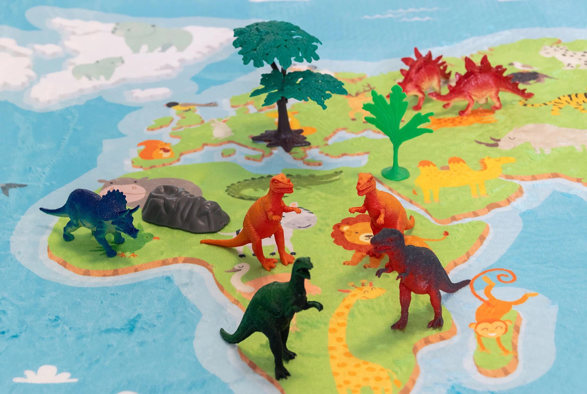 Raznolik odabir dinosaura, stabala i kamenja omogućuje djeci stvaranje vlastitih prapovijesnih scenarija te razvijanje mašte i ustrajnosti u igri.
