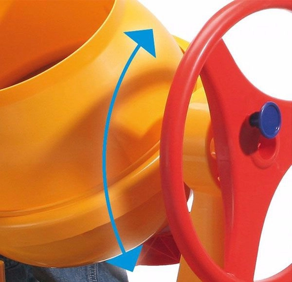 Ova robusna dječja miješalica dizajnirana je tako da što vjernije oponaša pravi građevinski stroj. Zahvaljujući mehaničkom okretanju ručicom djeca mogu lako miješati “beton” i prenositi smjesu pomoću nagibnog bubnja s nekoliko aretacijskih položaja.