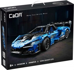 Sastavite impresivan model sportskog automobila DARK KNIGHT GTR u mjerilu 1:10 od 2088 dijelova. Detaljno razrađena karoserija u plavoj boji, funkcionalno prednje i stražnje ovjesenje, otvaranje vrata prema gore pomoću kontrolera i mogućnost dodavanja daljinski upravljanih elemenata (nisu uključeni). Dijelovi su kompatibilni s drugim CaDA setovima.