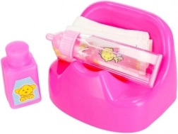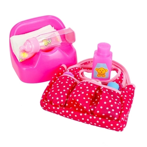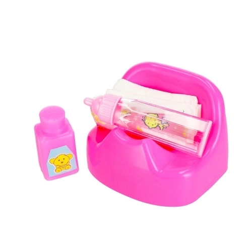 Ovaj kompletan dječji set donosi realistične dodatke za njegu lutaka: torbicu za potrepštine, stol za presvlačenje, kahlicu, pelenu, puder i nekoliko bočica. Zahvaljujući izdržljivoj plastičnoj izradi te laganim, kompaktnim dijelovima idealan je za dom i putovanja.