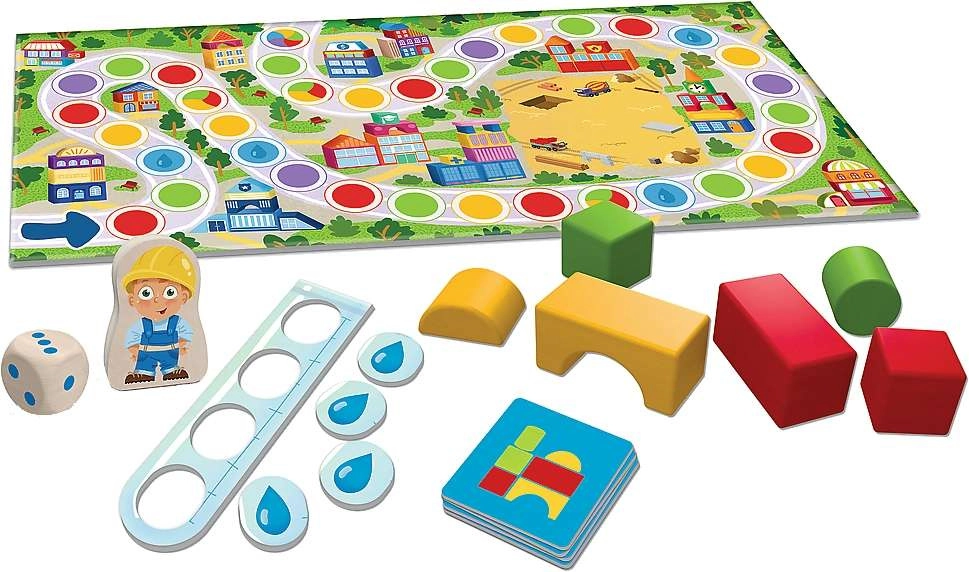 Zadatak igrača je pronalaziti odgovarajuće elemente i dovršiti građevinske projekte brže nego što stigne kiša. Igra donosi kratke i napete partije koje potiču suradnju i zdravo natjecanje. Šareno pakiranje čini je sjajnim poklonom za male graditelje.