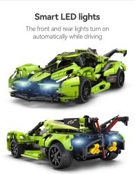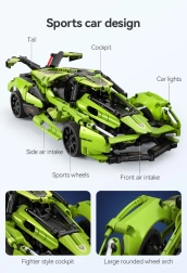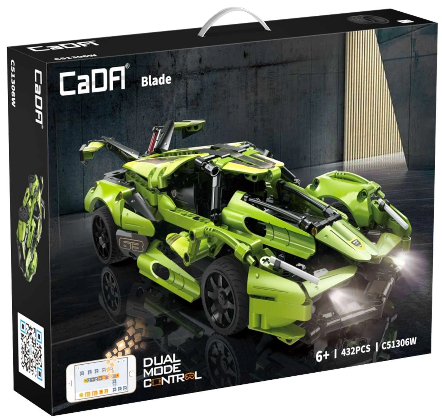 Sastavite vlastiti zeleni sportski automobil Blade marke CaDA i upravljajte njime na daljinu pomoću RC upravljača 2,4 GHz ili Bluetooth aplikacije. Set sadrži 432 dijela, funkcionalna prednja i stražnja LED svjetla, gumene gume za vožnju po raznim podlogama te domet upravljanja od preko 25 metara. Maksimalna brzina do 5,5 km/h i elegantno pakiranje čine ovaj set odličnim poklonom za male i velike konstruktore.