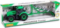 Zeleni traktor s plugom brenda POLESIE detaljno je izrađena igračka specijalnog traktora s inercijskim pogonom za još zabavniju vožnju. Nudi otvorivu poklopnu haubu s mogućnošću zaključavanja za “popravke” tijekom igre, prikolicu s plugovima s izmjenjivim radnim stranama i izdržljivu konstrukciju za igru u kući i na otvorenom. Idealan za male ljubitelje poljoprivrednih strojeva.