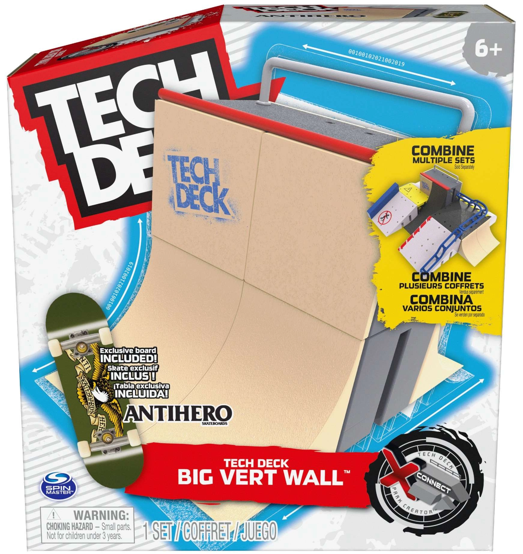 Doživite realistične fingerboard trikove s rampom Big Vert Wall iz serije X-Connect i originalnim fingerboardom TECH DECK Antihero. Sustav međusobno povezivih rampi omogućuje stvaranje vlastitog parka, treniranje grindova, skokova i flip trikova te stalno napredovanje vještina. Idealno za početnike i napredne zaljubljenike u fingerboarding.