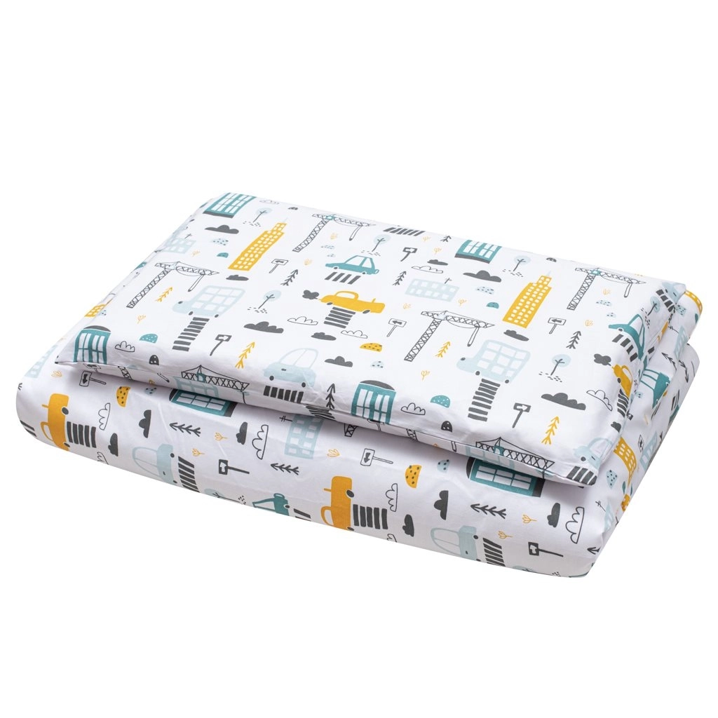Set posteljine NEW BABY idealan je izbor za bebe i malu djecu. Kvalitetan 100% pamuk ugodan je na dodir, dobro odvodi vlagu i ne nadražuje kožu. Dizajn s motivom grada u goruščičnim tonovima uljepšat će krevetić i stvoriti ugodnu atmosferu za uspavljivanje.