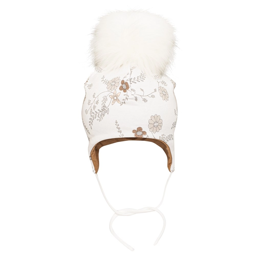 Set New Baby Special One idealan je izbor za zimu i jesen. Podstavljena kapa pokriva uši, veže se trakicama i odlično stoji na glavici. Mekani pompon daje razigran izgled, dok se nježan cvjetni uzorak u bež tonovima lako slaže s dječjom odjećom.