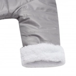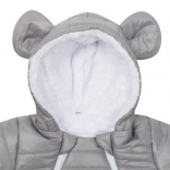 Praktični detalji, poput kapuljače s preslatkim ušima, rukava koji se mogu preklopiti sa zatepljenim rubom i prekrivenih stopala, drže bebu na toplom od glave do pete. Kombinezon je odličan izbor za kolica, nosiljku i zimske šetnje.