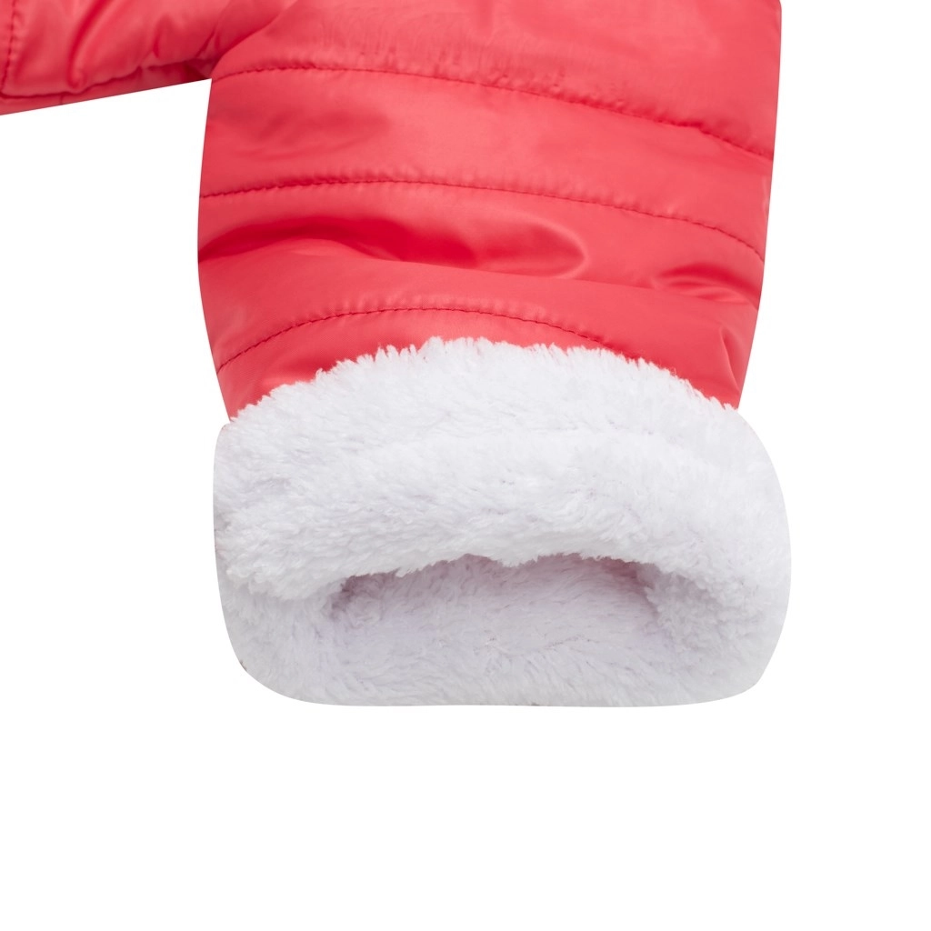 Topli zimski kombinezon NEW BABY Pumi u nijansi crvene maline dizajniran je za maksimalnu udobnost beba u hladnom vremenu. Mekana wellsoft podstava ugodno grije i nježna je prema osjetljivoj dječjoj koži, dok antialergijsko punjenje zadržava toplinu i u vjetrovitim danima. Dva bočna patentna zatvarača olakšavaju brzo oblačenje i prematanje.