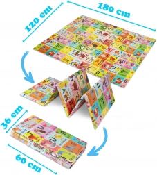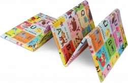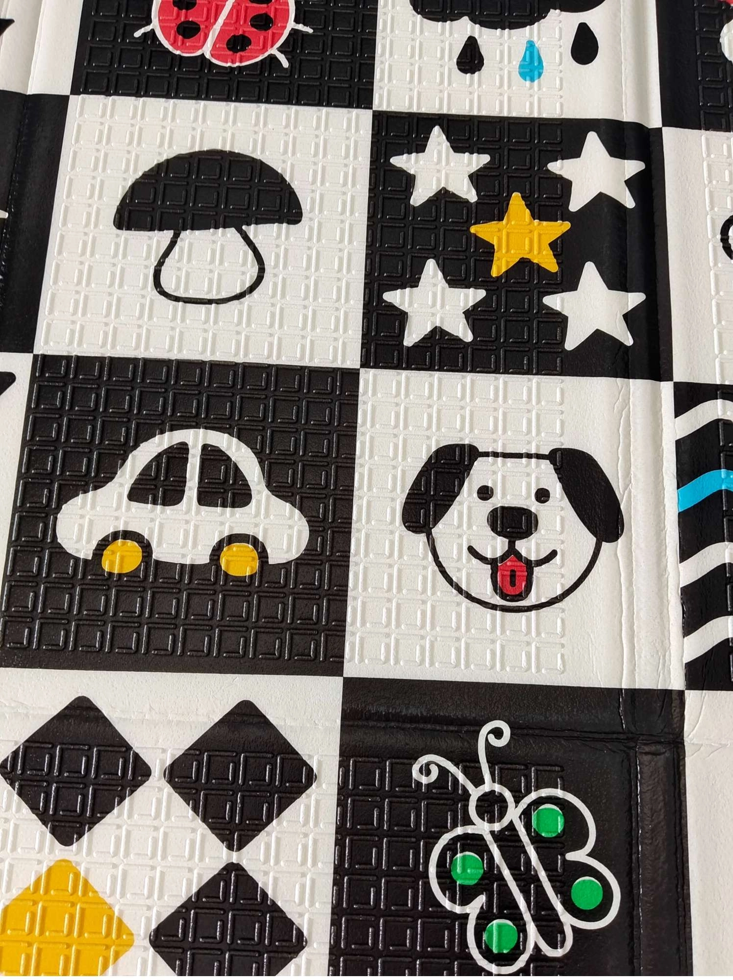 Materijal XPE je bez mirisa, vodootporan i lako se čisti – nečistoće je dovoljno obrisati vlažnom krpom. Podloga je sklopiva, lagana i štedljiva prostorom, pa je lako prenijeti i odložiti. Zahvaljujući protukliznoj teksturi osigurava stabilnost pri igri i roditeljskom vježbanju.