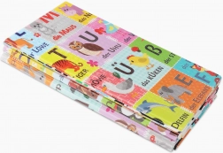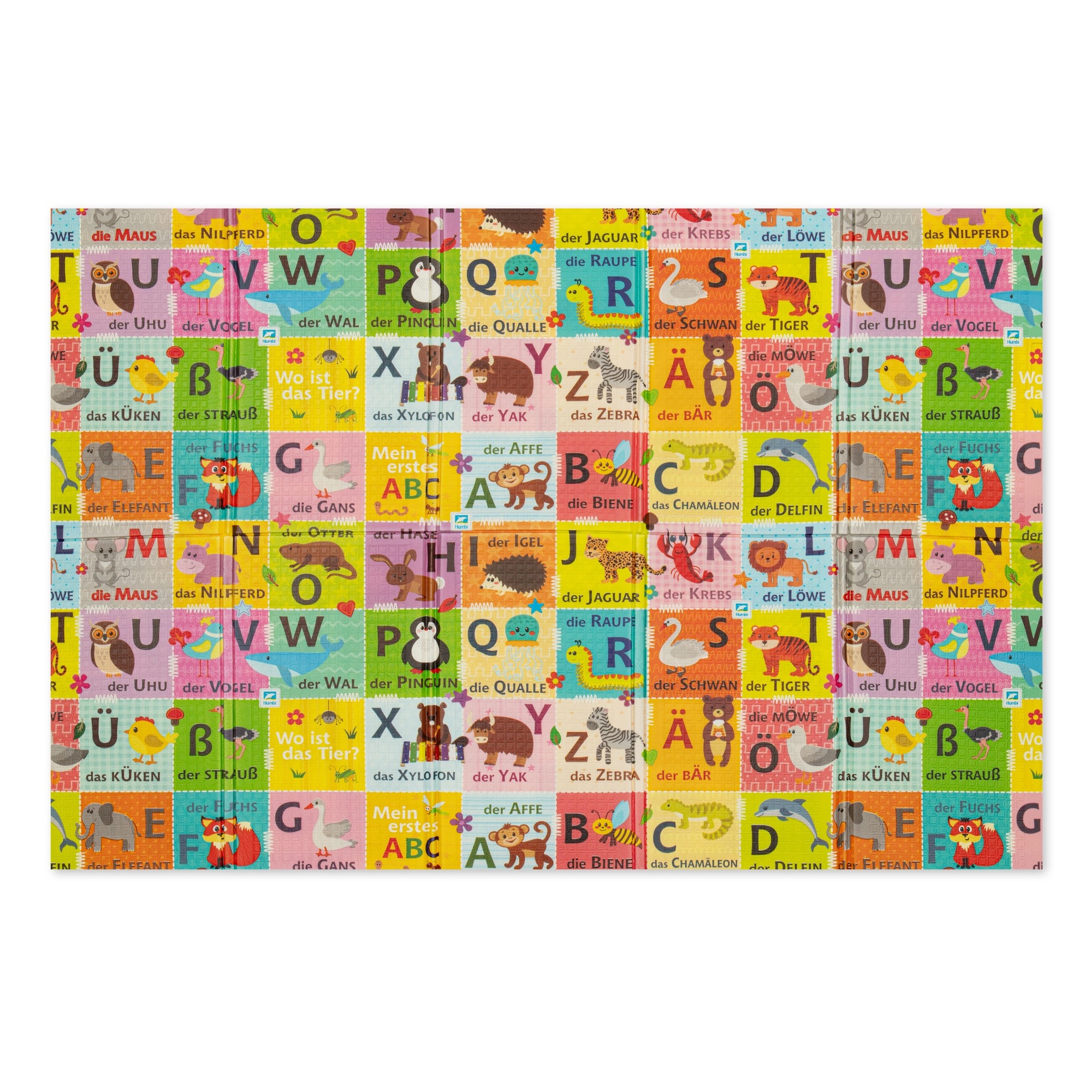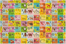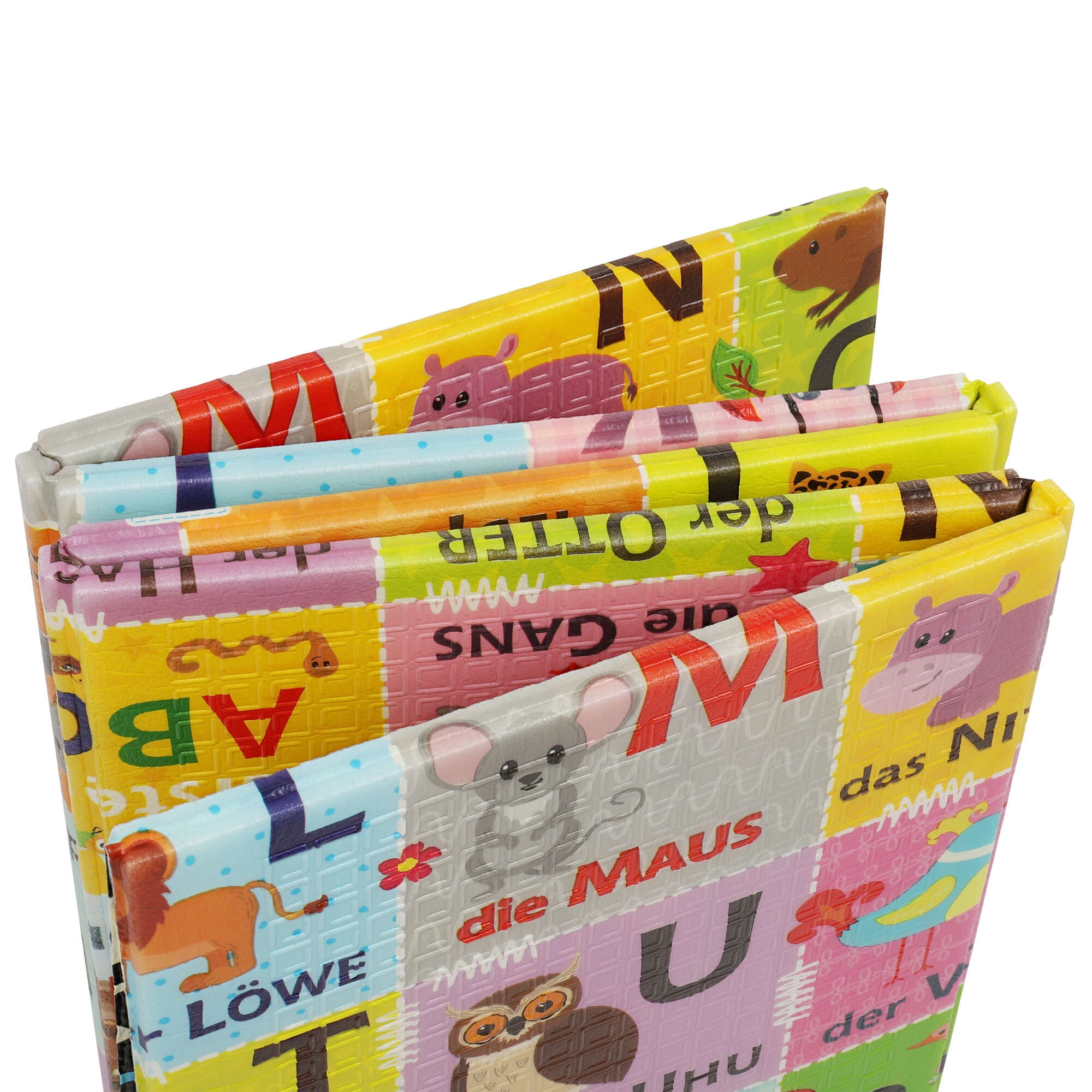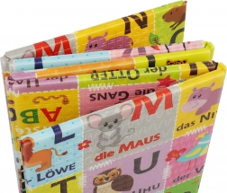 Šarena strana s njemačkom abecedom i simpatičnim životinjama potiče prvo upoznavanje sa slovima, a kontrastna crno-bijela strana stimulira vid i koncentraciju.