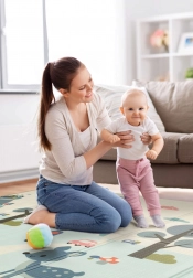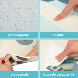 Sloj XPE pjene debljine 1 cm odlično upija udarce, izolira od hladnoće te je bez mirisa i štetnih tvari. Savršena za igru, puzanje i prve korake.