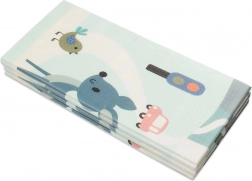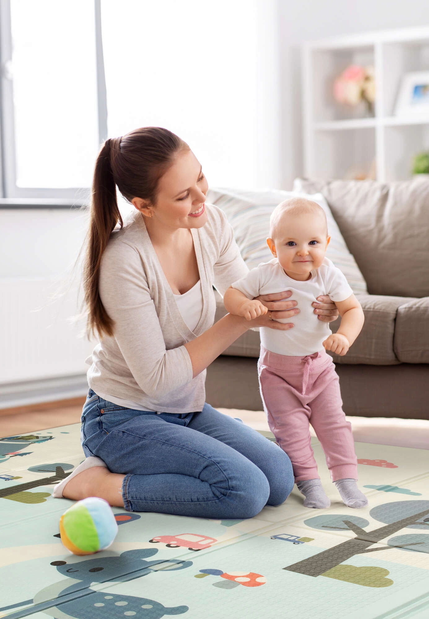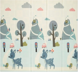Premium XPE pjena osigurava odlično upijanje udaraca, toplinsku izolaciju od hladnog poda i dug vijek trajanja. Obje strane podloge imaju različite, edukativne otiske – nježnu “šumsku stazu” sa slatkim životinjicama i kontrastne motive za vizualnu stimulaciju najmlađih. Zahvaljujući protukliznoj strukturi idealna je za sigurnu igru, vrijeme na trbuhu i učenje puzanja i hodanja.