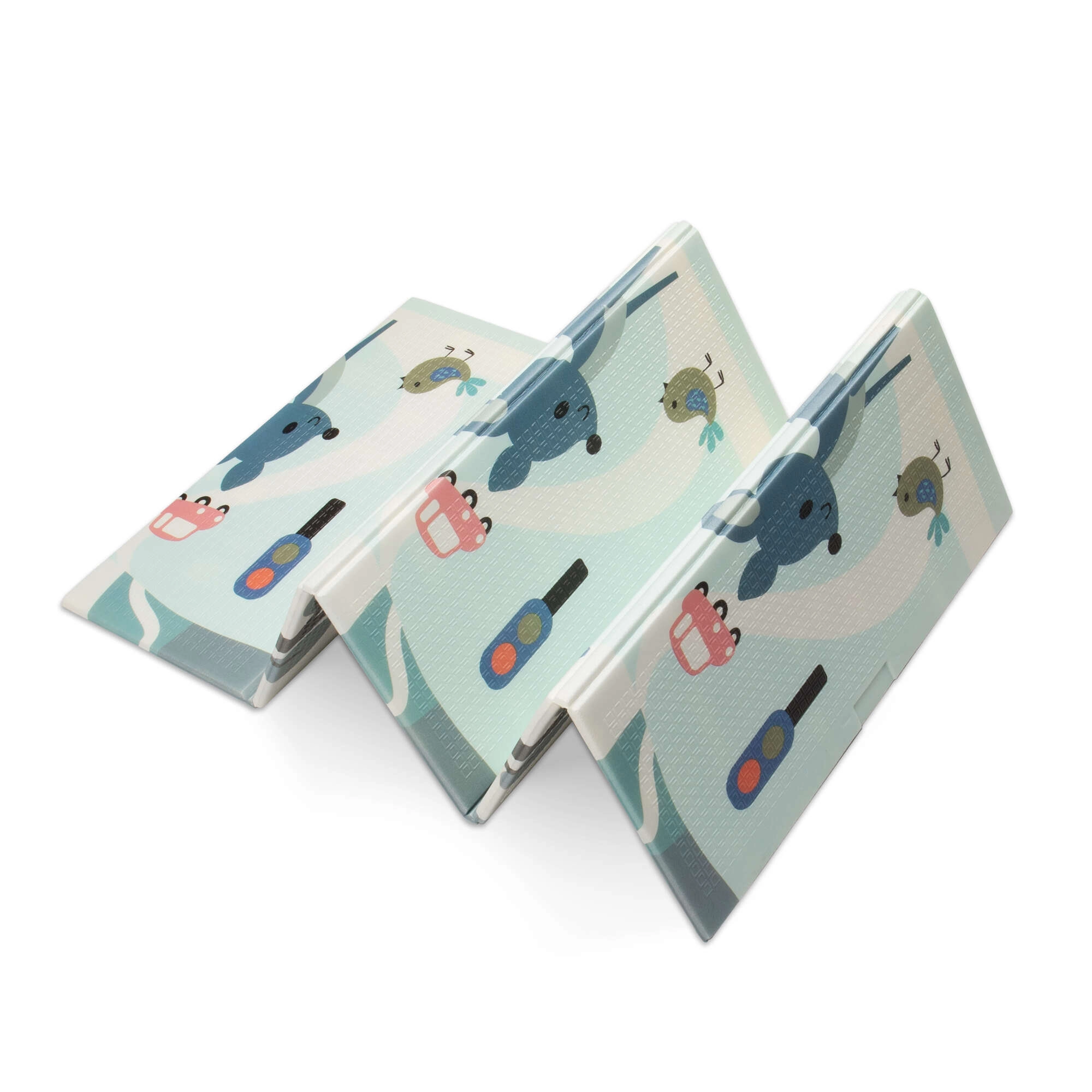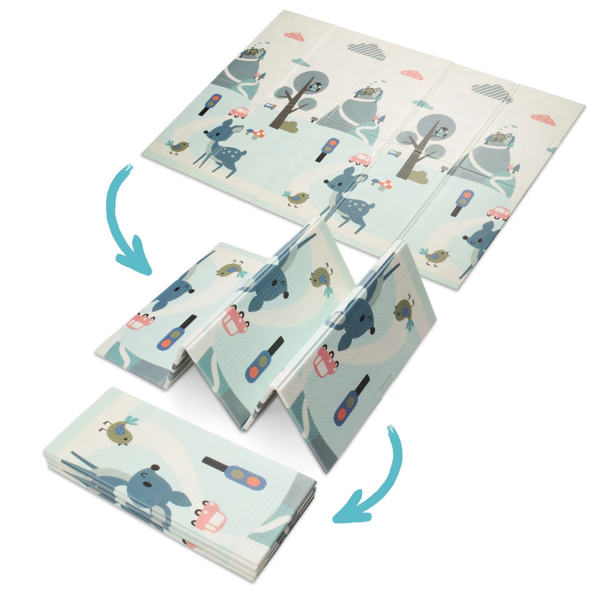 Podloga se sklapa kao harmonika, pa je u par sekundi možete raširiti ili spremiti. Lagana je, vodootporna i dovoljno ju je obrisati vlažnom krpom – odličan izbor i za alergičare jer ne zadržava prašinu ni grinje. U paketu je i torba s patentnim zatvaračem i ručkama za udobno prenošenje u vrt, na balkon, piknik ili na put.