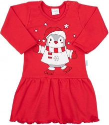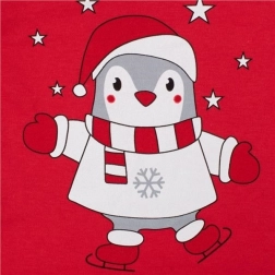 Praktično kopčanje drukerom na ramenu olakšava oblačenje, dok elastična traka za kosu pristaje uz haljinicu i lijepo upotpunjuje outfit. Presladak zimski motiv pingvina i izražajna crvena boja daju odjeći razigran izgled.