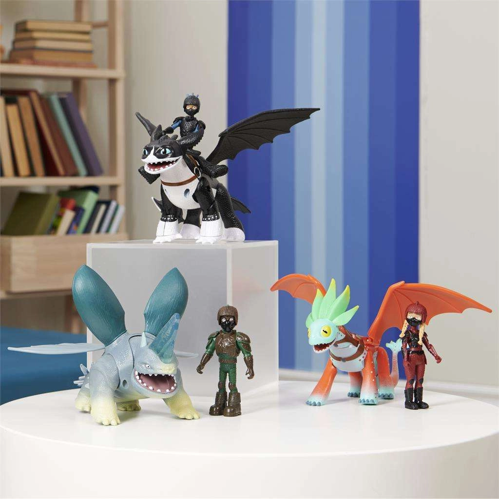 Uđite u svijet Kako izdresirati zmaja s detaljno izrađenim figuricama D’Angela (oko 10 cm) i njegova zmaja Plowhorna (oko 18 cm). Zmaj ima otvarajuću čeljust, zglobna krila, pokretne udove i pri pritisku na rep podiže glavu – odlično za dinamične scene i napete dvoboje.