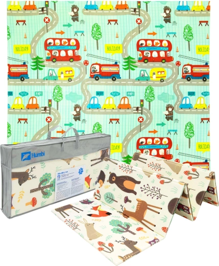 Praktična dječja podloga HUMBI od kvalitetne XPE pjene nudi dimenzije 200 × 180 × 1 cm, obostrana je, sklopiva i vodootporna. Pruža mekano ublažavanje, toplinsku izolaciju od hladnog poda i ima protukliznu površinu. Uključena je prijenosna torba za lako spremanje i nošenje. Bez štetnih tvari, ispunjava norme EN71 i REACH.