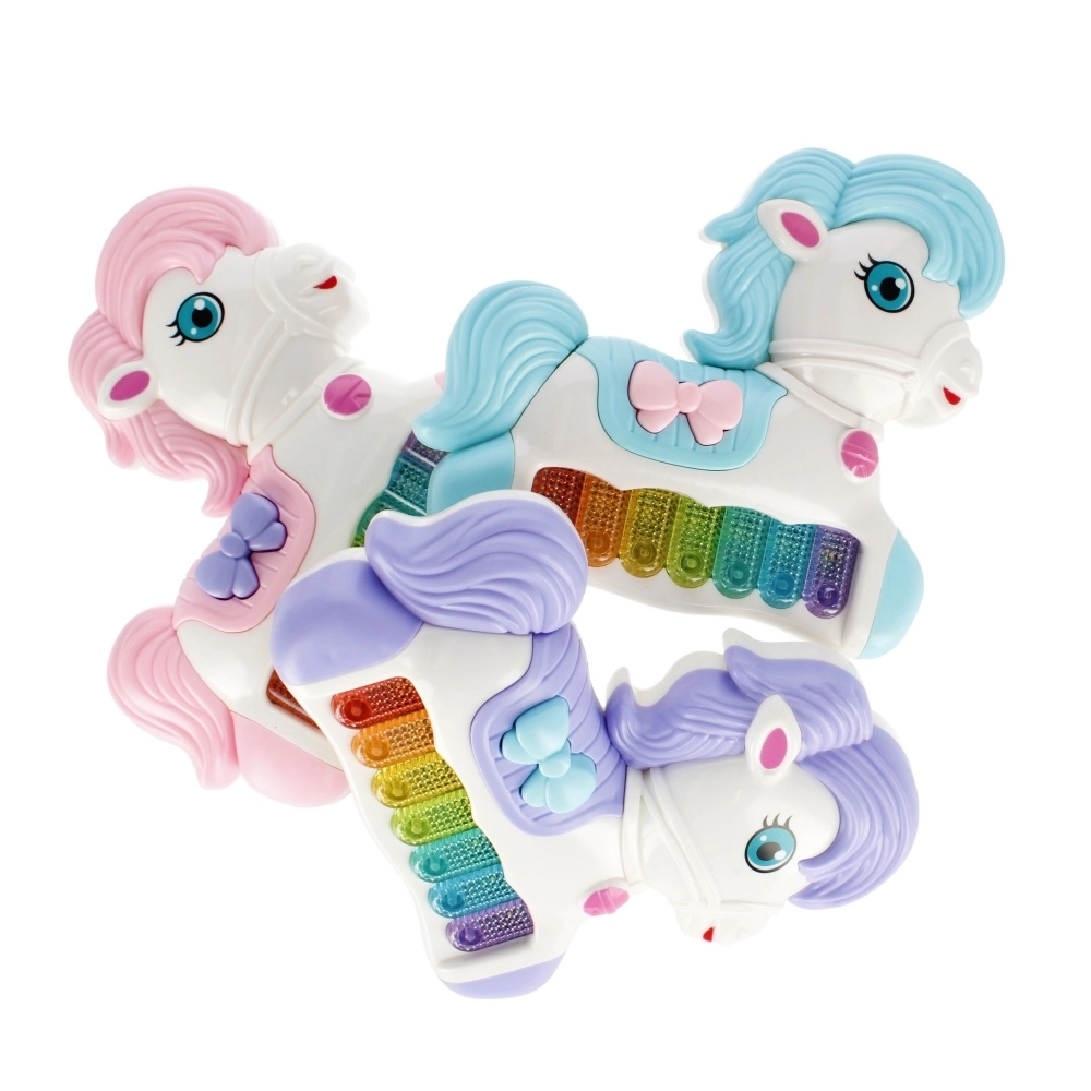 Otkrijte čaroliju glazbe s pianinom u obliku jednoroga koji će djecu privući živim bojama i jednostavnim upravljanjem. Pritiskom na obojene tipke pokreću se melodije, tonovi i svjetlosni efekti koji potiču znatiželju i razvijaju osjetila.