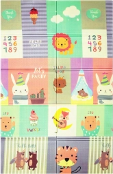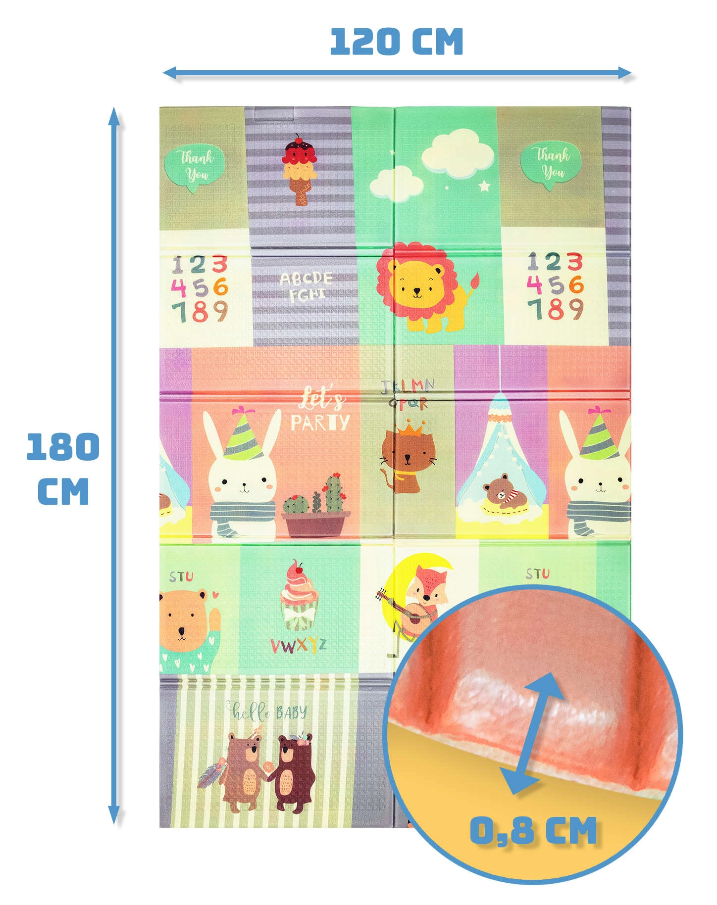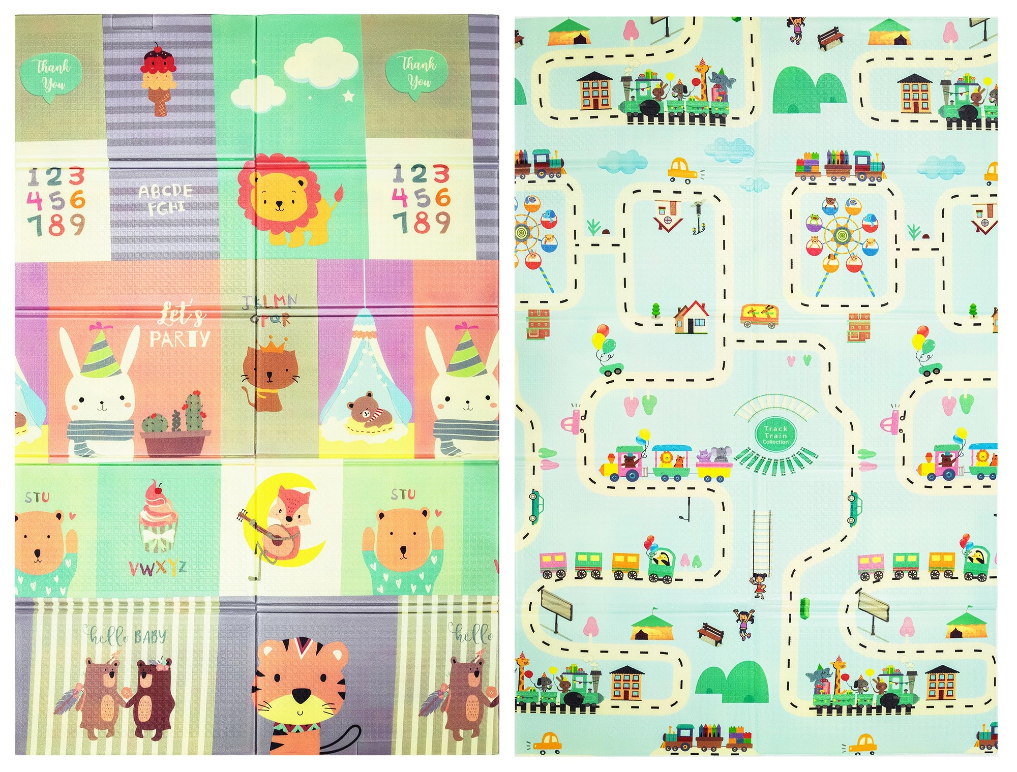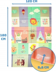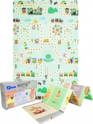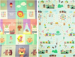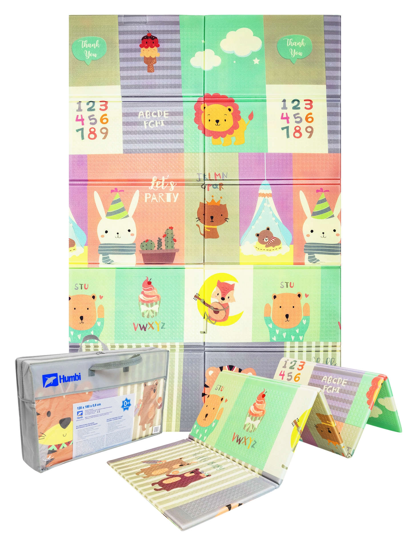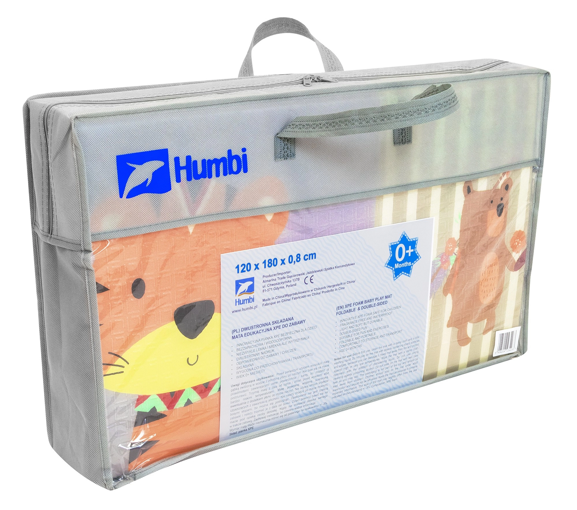 Podloga za igru HUMBI od kvalitetne XPE pjene idealna je za dječju sobu, dnevni boravak i vrt. Zahvaljujući debljini od 0,8 cm odlično izolira hladnoću s poda i istovremeno ublažava udarce pri padovima. Obostrani dizajn nudi s jedne strane preslatke životinjice u pastelnim bojama, a s druge šarene uličice – sjajno za zabavu i poticanje osjetila.