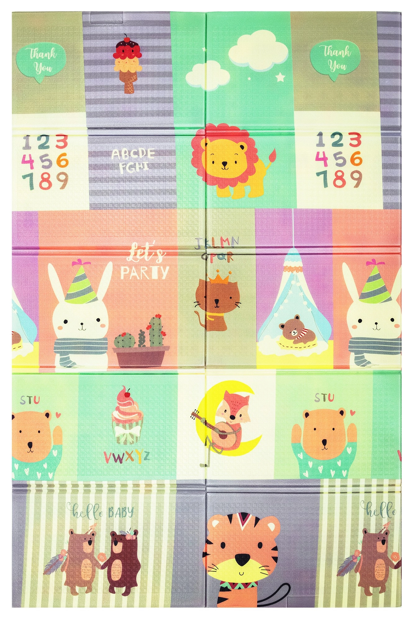 Podloga je lagana, brzo se sklapa i zahvaljujući priloženoj torbi s patentnim zatvaračem lako je ponesete na put, piknik ili balkon. Materijal XPE je bez mirisa, netoksičan, vodootporan i jednostavan za održavanje – dovoljno je prebrisati vlažnom krpom. Protuklizna struktura s blagim reljefom podupire sigurno puzanje i hod te potiče senzorni razvoj.