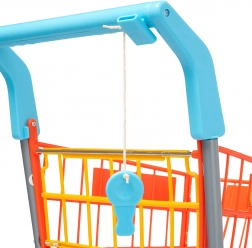 Ova dječja kupovna košarica odličan je izbor za male prodavače i kupce. Zahvaljujući kombinaciji narančaste košare, plave ručke i kotača te žutih detalja, izgleda privlačno i potiče kreativnu igru. Široki kotači osiguravaju stabilnost i lako manevriranje u interijeru.