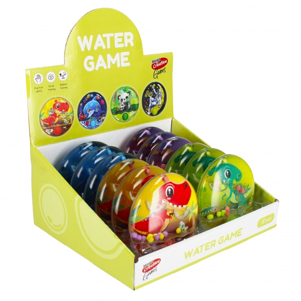 Zabavna džepna vodena igra Dino potiče finu motoriku, koncentraciju i maštu djece. Jednostavnim pritiskom na gumb pokrećete vodu i pokušavate dobiti šarene kuglice u dvije košarice. Dostupna u 4 preslatka Dino dizajna, idealna za djecu od 3 godine za putovanja i kod kuće.