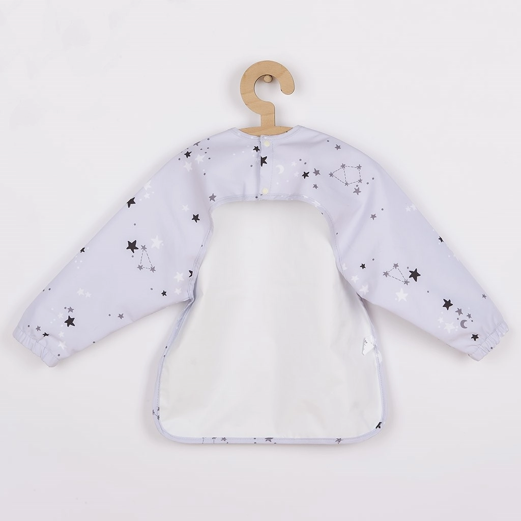 Praktična dječja podbradna pregača s dugim rukavima New Baby pouzdano štiti odjeću tijekom jela i kreativnih aktivnosti. Izrađena je od laganog, mekog materijala, ima udobno kopčanje na 2 drukera i praktičan džep. Donji sloj je vodonepropustan, pa je dovoljno obrisati vlažnom krpom ili oprati u perilici. Zahvaljujući dugim rukavima idealna je i za slikanje i kreativnu igru.