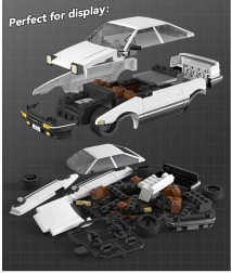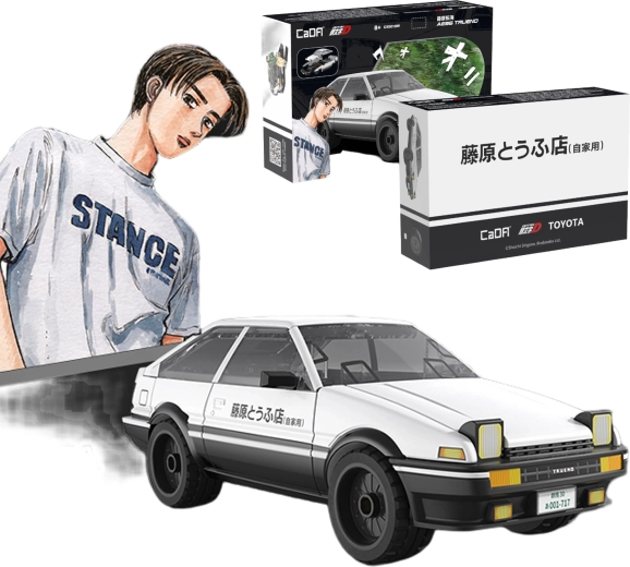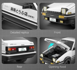 Ovaj stilski CaDA set donosi gradsko vozilo TOYOTA AE86 TRUENO nadahnuto kultnom serijom INITIAL D. U kompaktnoj razmjeri 1:35 sastavit ćete bijeli automobil s crnim detaljima i gumenim kotačima koji omogućuju vožnju po raznim podlogama. Sastavljanje je jasno opisano u uputama korak po korak, pa model mogu složiti i mlađi graditelji uz pomoć odrasle osobe.