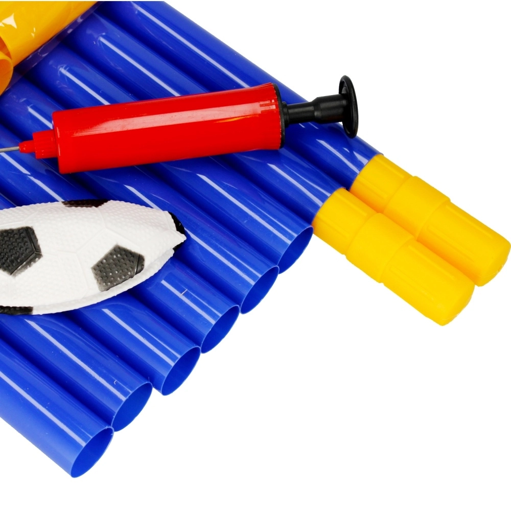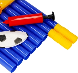 Set dolazi kao kompletno pakiranje: gol od spojnih cijevi, mreža, loptica i ručna pumpica. Klinovi osiguravaju stabilnost gola na travi, dok izdržljiva mreža pouzdano hvata svaki pogodak. Odlično za razvoj koordinacije, pokreta i timske igre.