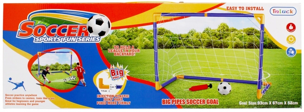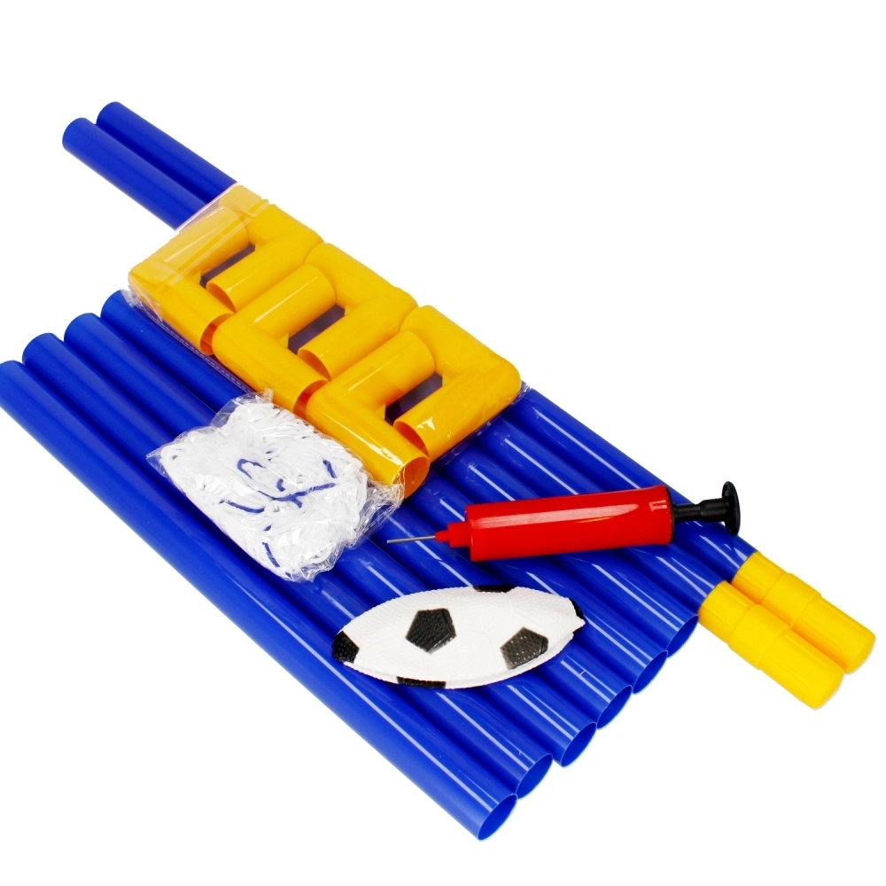 U pakiranju se nalaze gol, mreža, lopta, ručna pumpica i klinovi – dovoljno je sastaviti i možete igrati.