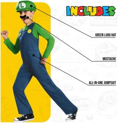 Službeno licencirani kostim Luigi iz svijeta Super Mario razveselit će svako dijete koje voli avanturističke platformerske igre. Zahvaljujući udobnom kroju i laganom materijalu odlično je prikladan za cjelodnevnu igru i svečane prigode.