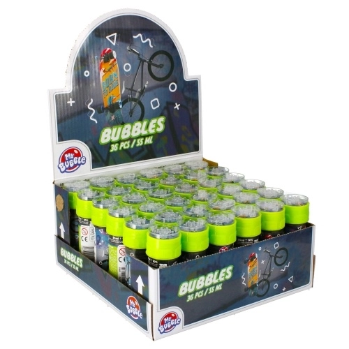 Bublifuk BMX Skate 55 ml donosi puno radosti pri puhanju duginih mjehurića. Zahvaljujući kvalitetnoj tekućini stvara stabilne, sjajne mjehuriće, koji su odlični za vrt, igralište i dječje proslave. Svaki poklopac dodatno sadrži zabavnu kugličnu igru s labirintom, pa je zabava osigurana i tijekom pauze.