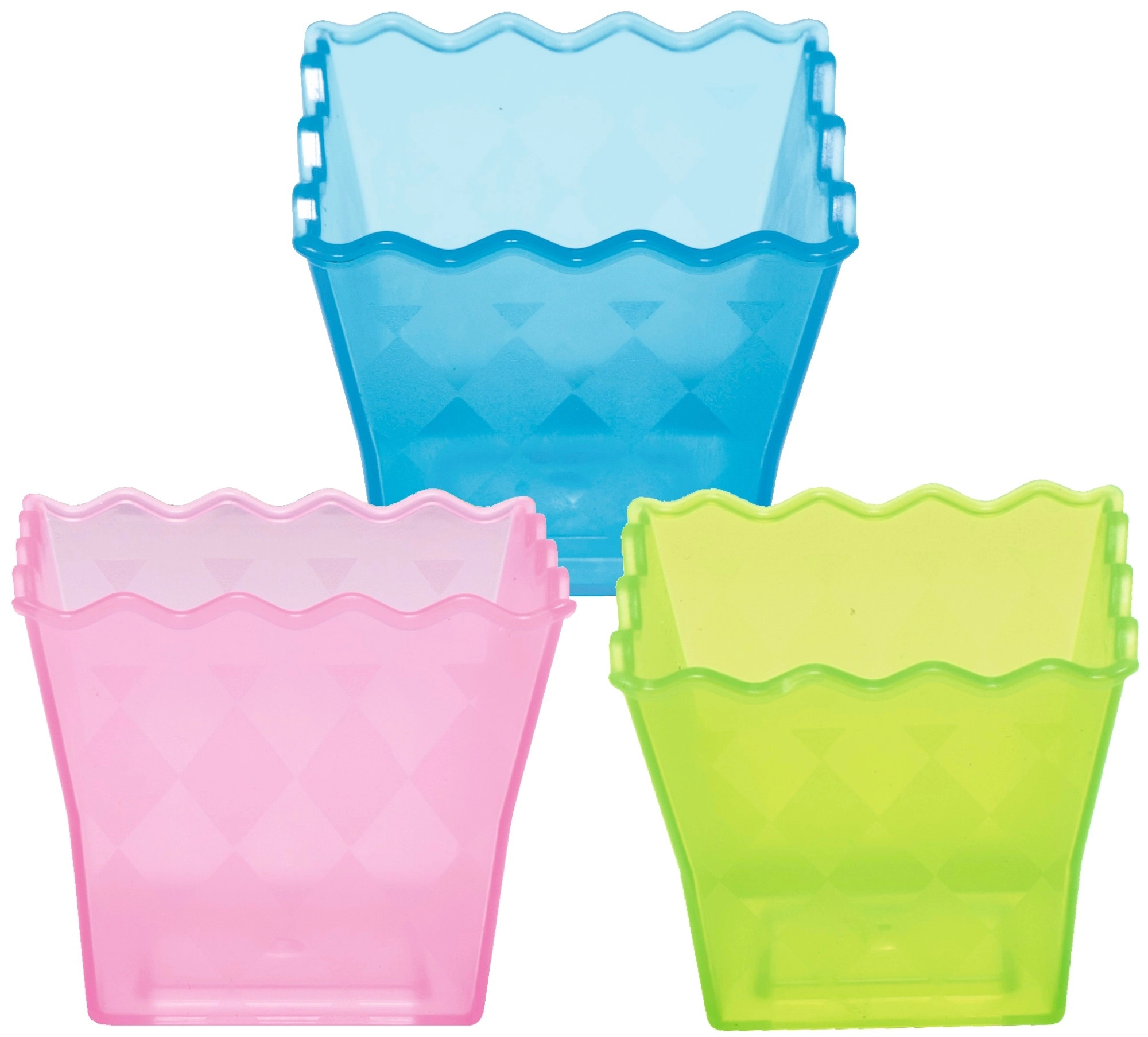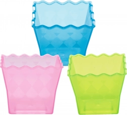 Prozirne, šarene posudice omogućuju pregledno izlaganje gotovih kreacija i jednostavno spremanje. Dizajn koji se može slagati štedi prostor.