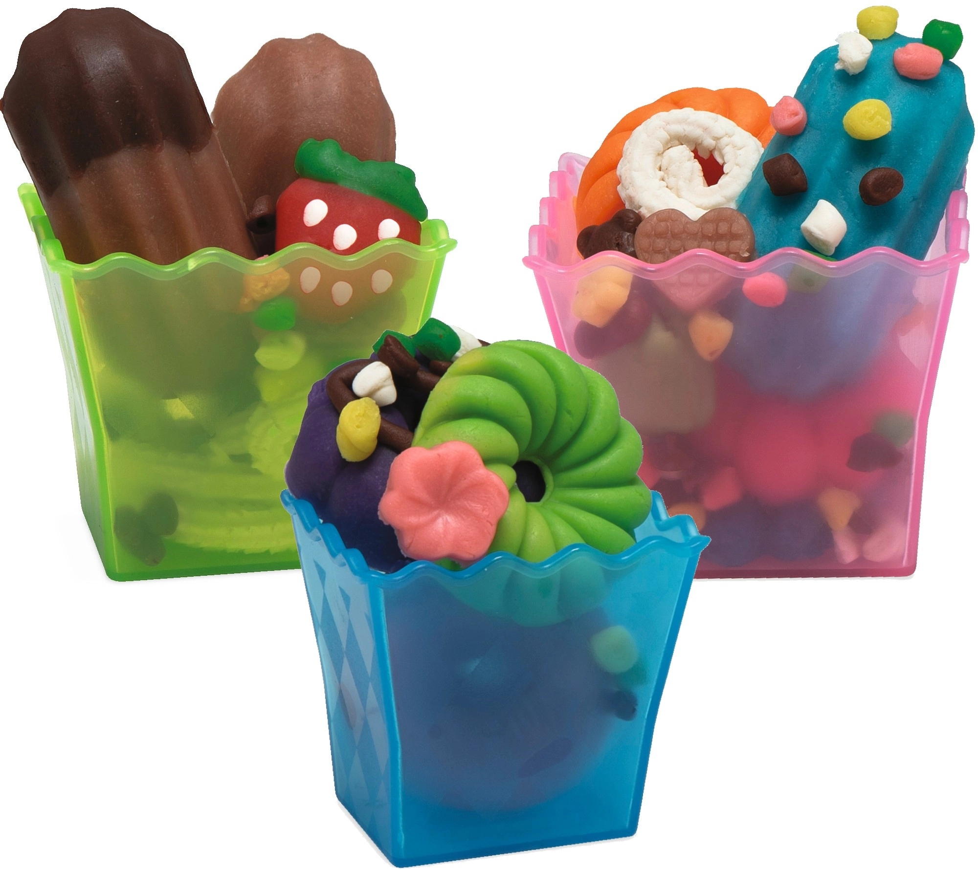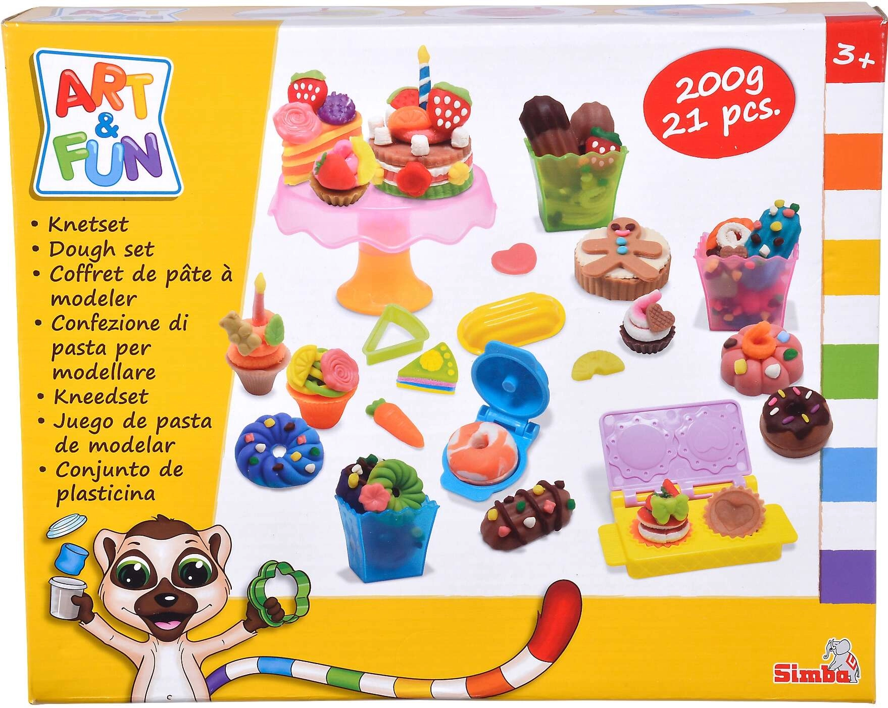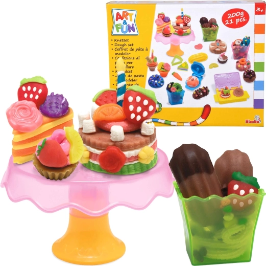 Stvarajte slatke kreacije bez pečenja! Kreativni set s plastelinom iz serije Art&Fun brenda Simba donosi 200 g plastelina u 6 boja i bogate kalupiće i nastavke za kolačiće, krafne, sladolede i preljeve. Zabava koja razvija maštu i finu motoriku te omogućuje djeci da svoje “deserte” stilski izlože u preslatkim čašicama i posudicama.