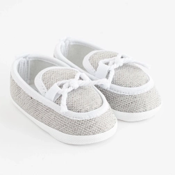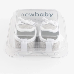 Papučice su vrlo lagane i imaju tanak sintetički potplat od PVC-a bez BPA, koji je mekan i pogodan za bebe koje ne hodaju. Gornja čipka je od 100% poliestera, što olakšava održavanje. Isporučuju se u praktičnoj poklon-kutiji, idealno i kao dar za novorođenče.