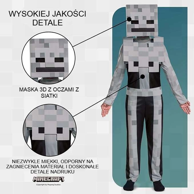 Sivo-bijeli kostim s kockastim tiskom vjerno podsjeća na Skeletona iz MINECRAFTA i jamči upečatljiv izgled na svakoj zabavi.