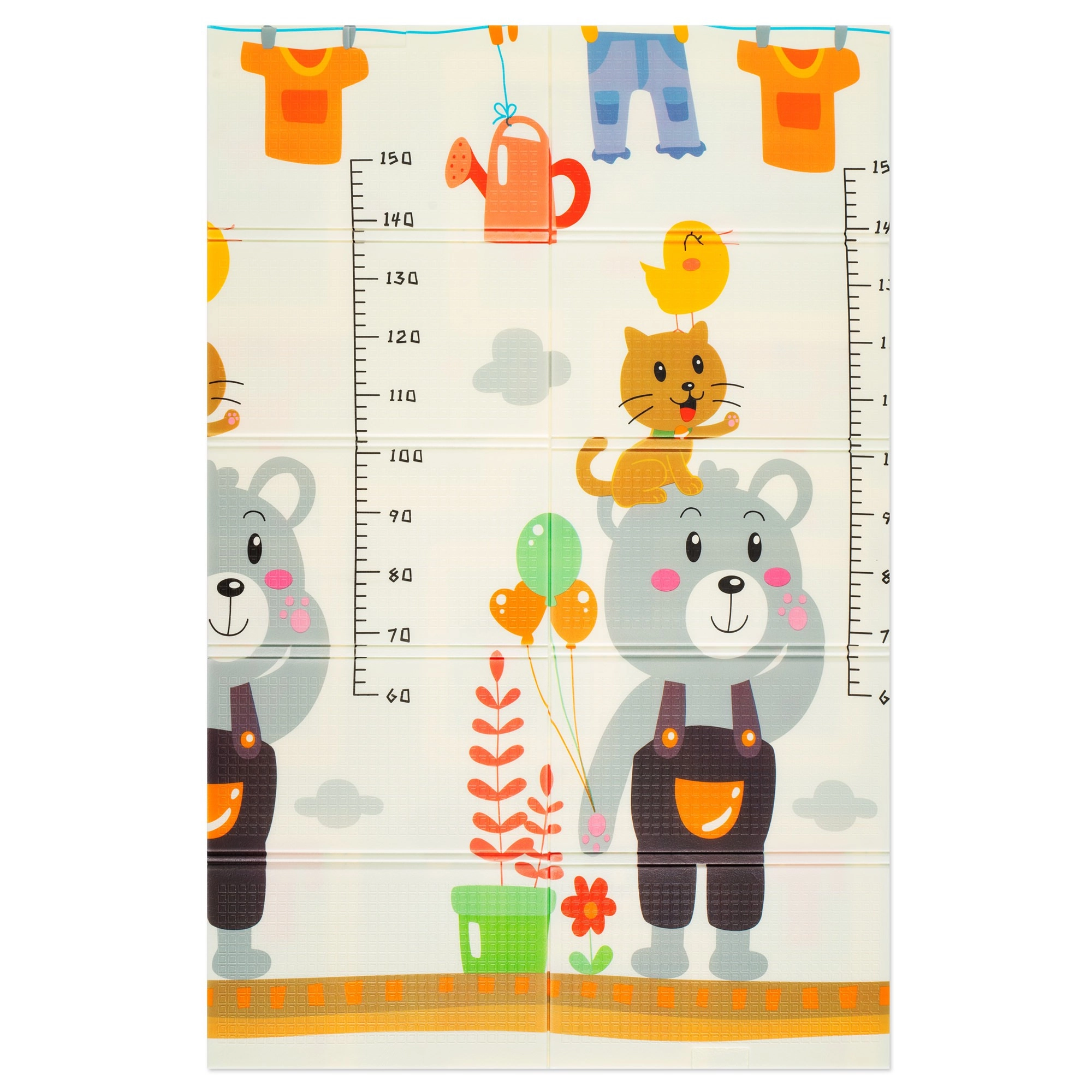 Praktična dječja podloga HUMBI od kvalitetne XPE pjene nudi meko i sigurno okruženje za igru, puzanje i prve korake. Obostrana je (motiv mačkica s mjerkom visine / ceste i vozila), sklopiva, lagana, vodootporna i lako se čisti. U pakiranju je transportna torba za udobno prenošenje kod kuće i na otvorenom.