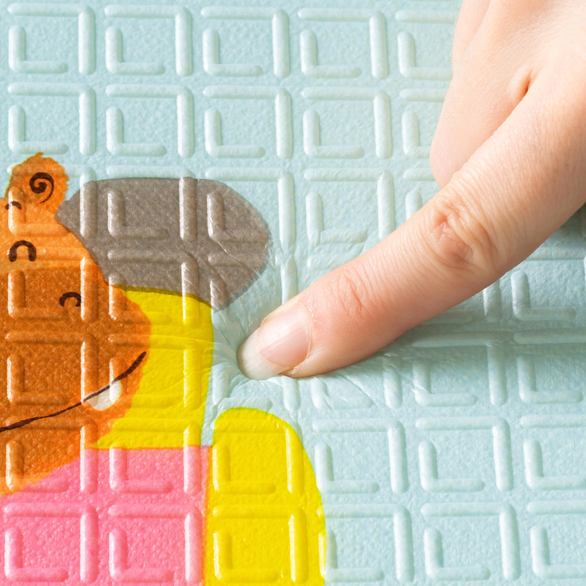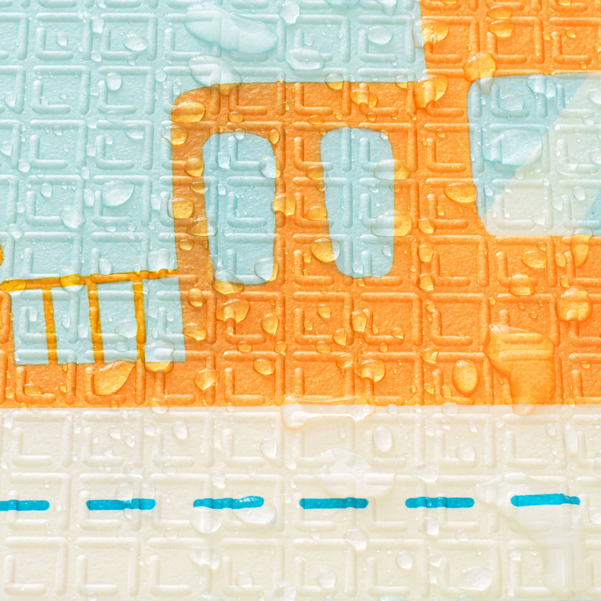 Debela, elastična i netoksična XPE pjena izvrsno ublažava padove, izolira hladnoću s poda i bez mirisa je. Površina je vodootporna i lako se čisti.