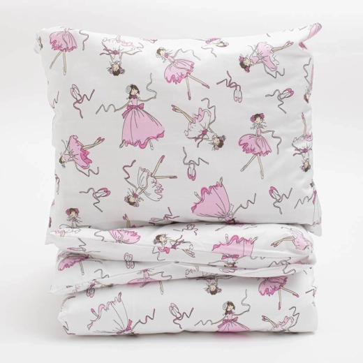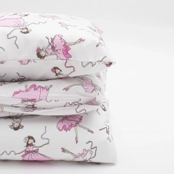 Romantični motiv balerine uljepšava dječju sobu i očarava nježnim, umirujućim bojama. Set je dizajniran tako da ne blijedi i ne ispušta boju na odjeću, pa dugo zadržava lijep izgled i funkcionalnost.