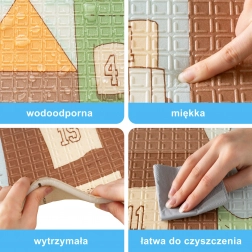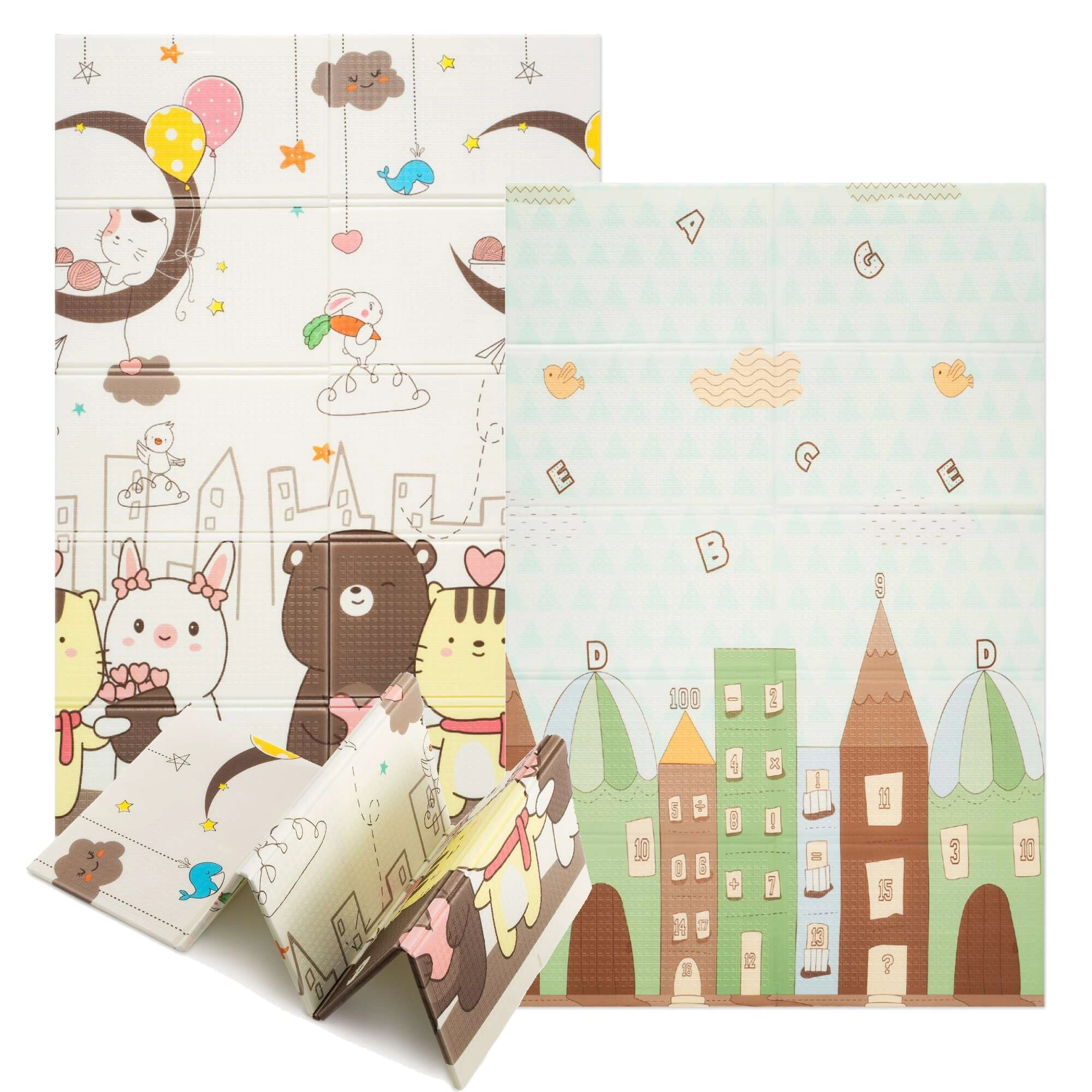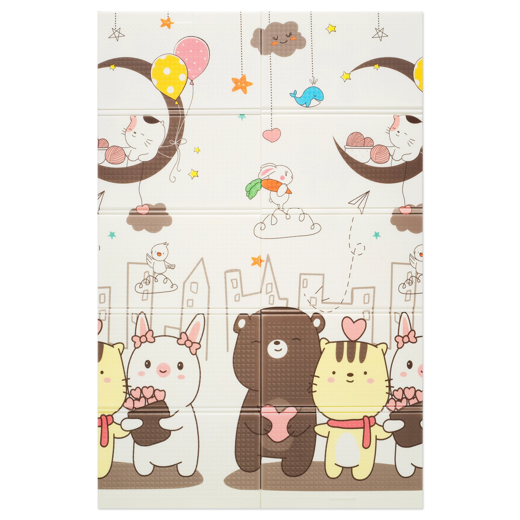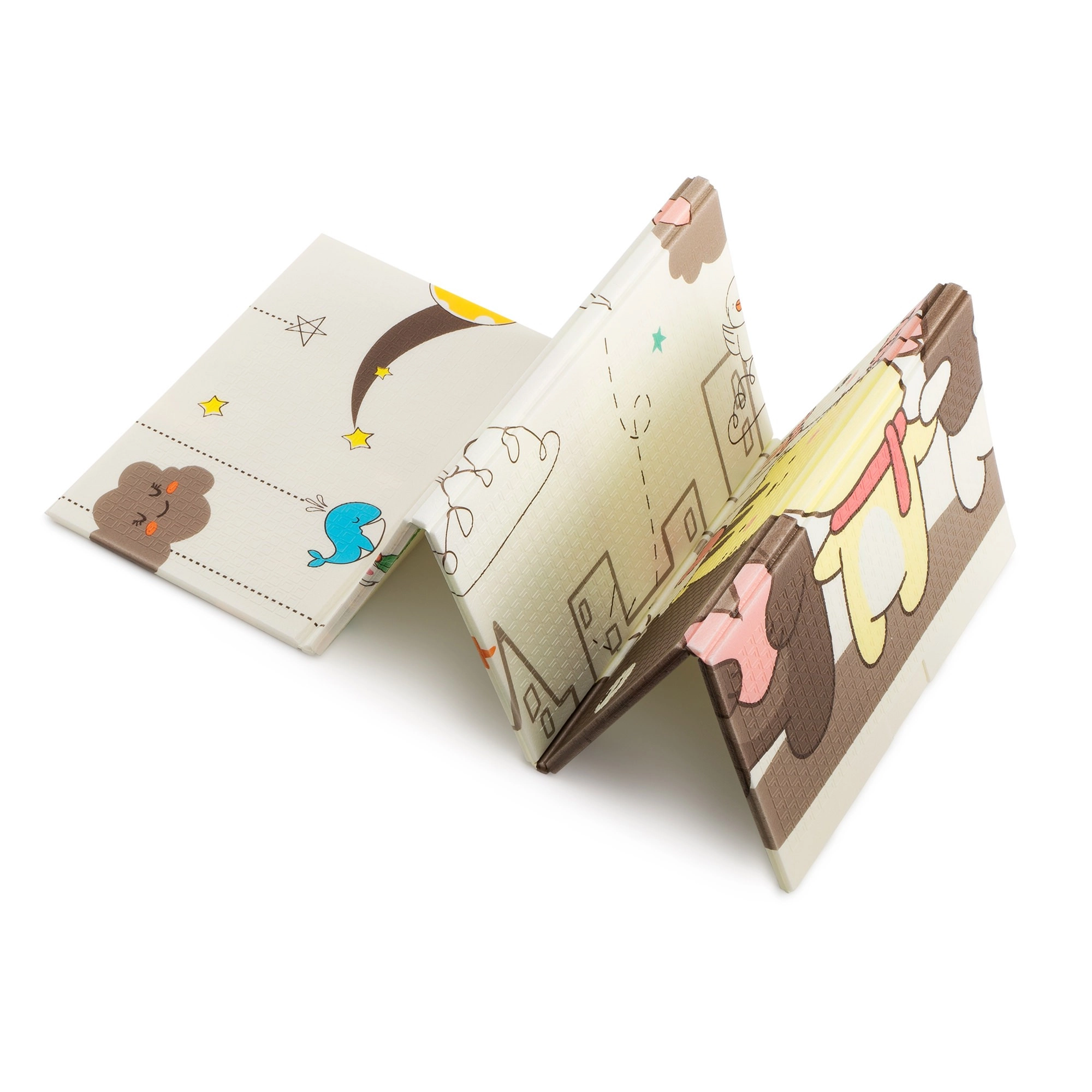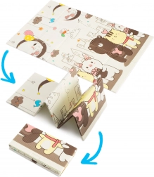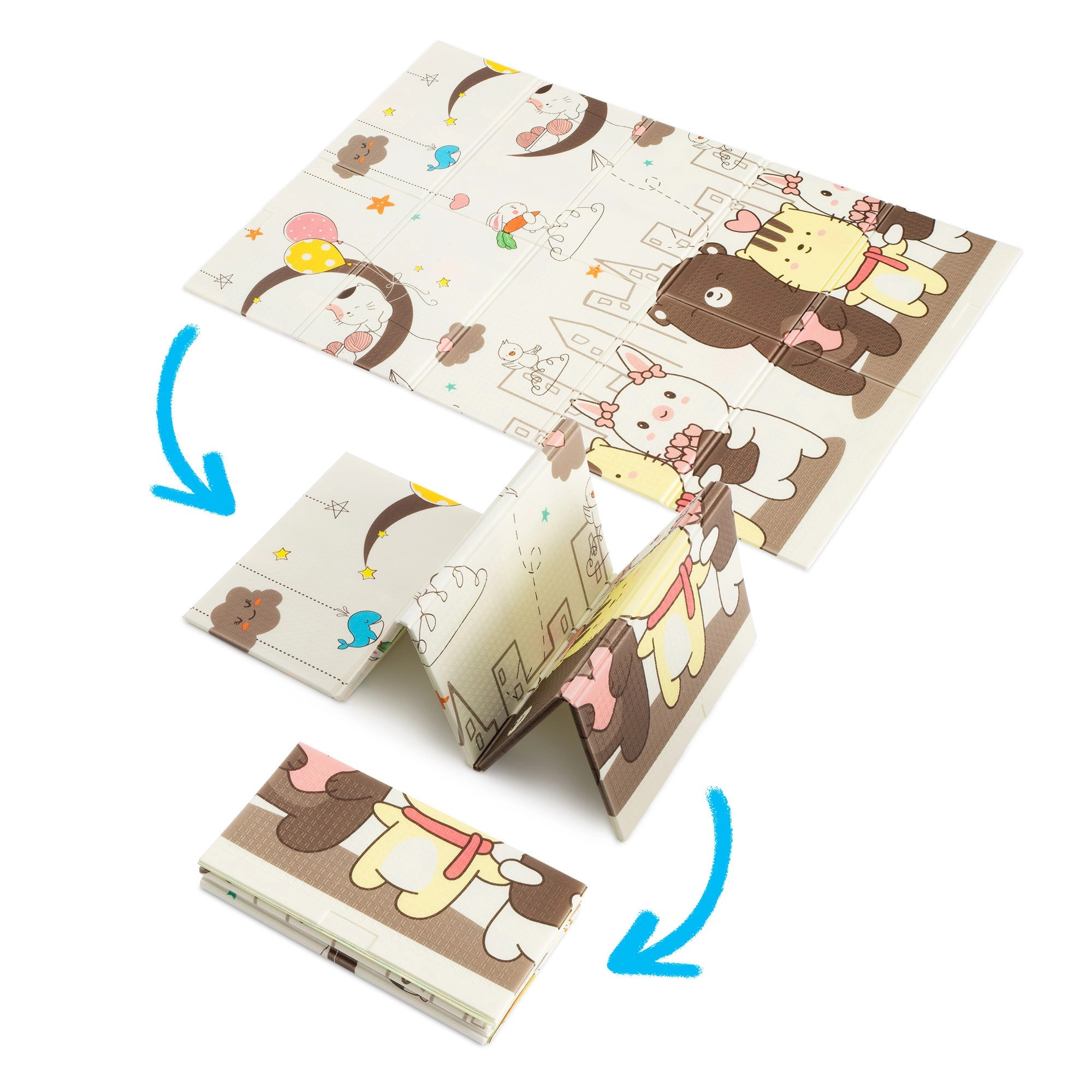 Praktična dječja podloga od kvalitetne XPE pjene za igru, puzanje i prve korake. Velika je, obostrana, sklopiva i vodootporna, a dio paketa je prijenosna torba. Pruža mekano ublažavanje, toplinsku izolaciju od hladnog poda i siguru, protukliznu površinu. Ne sadrži ftalate, formamid, PVC ni BPA i zadovoljava norme EN71 i REACH.