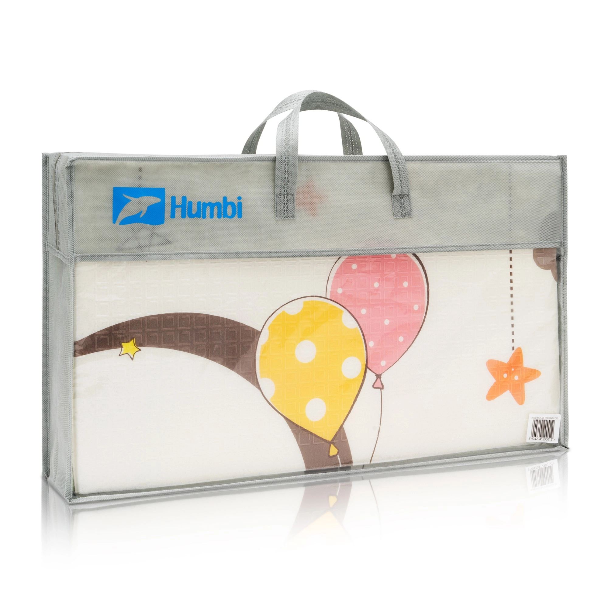 Velikoformatna igraća podloga HUMBI od premium XPE pjene stvara ugodno i higijensko mjesto za bebe i veću djecu. Zahvaljujući debljini od 0,8 cm izvrsno ublažava udarce, izolira od hladnoće, a njezina nježno reljefna, protuklizna površina podupire sigurnu vježbu puzanja i hoda. Obostrani dizajn s preslatkim motivima životinjica, kućica i brojeva lako oživljava svaku dječju sobu i dnevni boravak.
