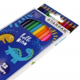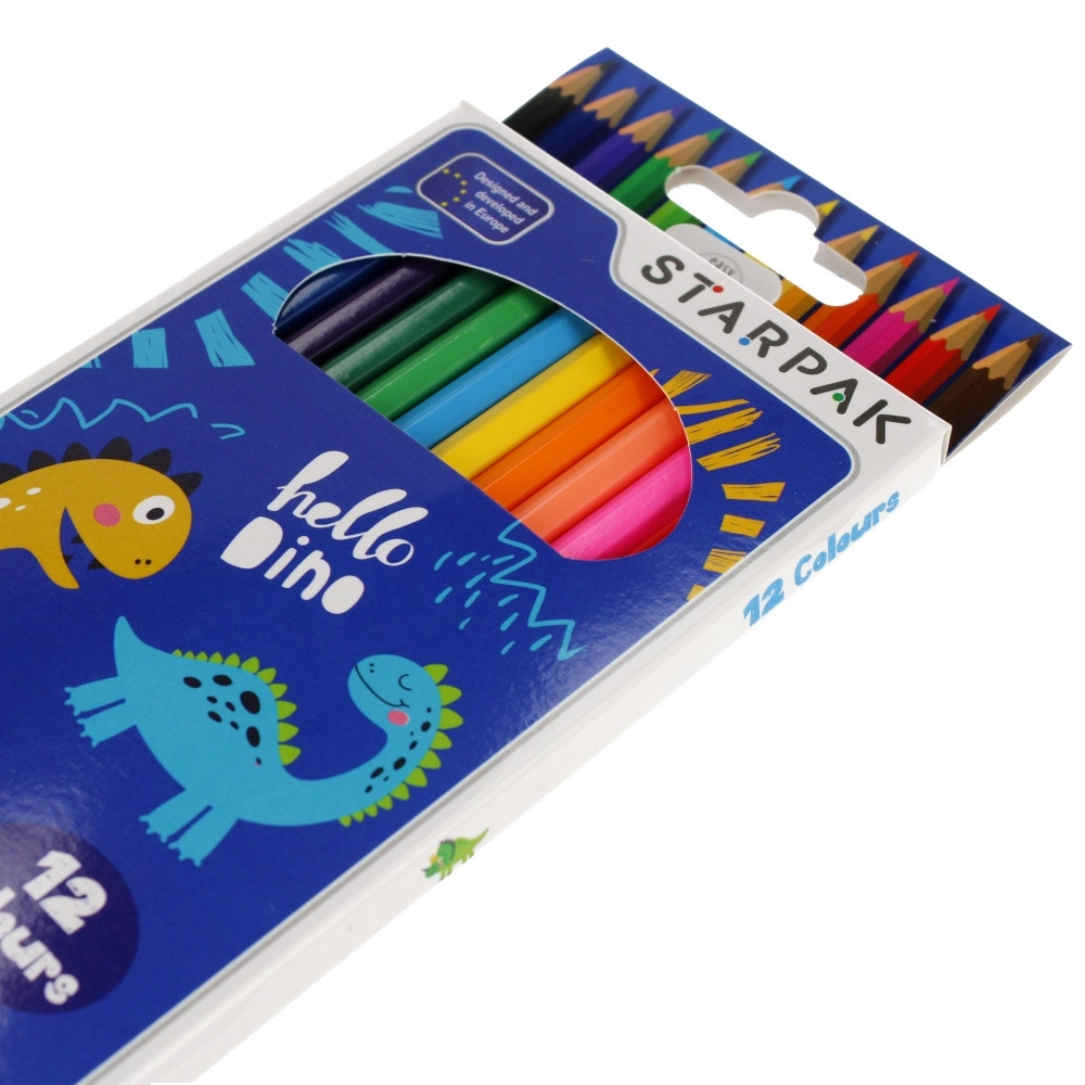 Ovaj set sadrži 12 kvalitetnih obojenih pastelica s omiljenim motivom dinosaura. Svaka pastelica duga je 18 cm, a zahvaljujući šesterokutnom obliku dobro leži u ruci, ne klizi i manje se kotrlja po stolu. Oštra mina osigurava precizne linije i živo bojenje.