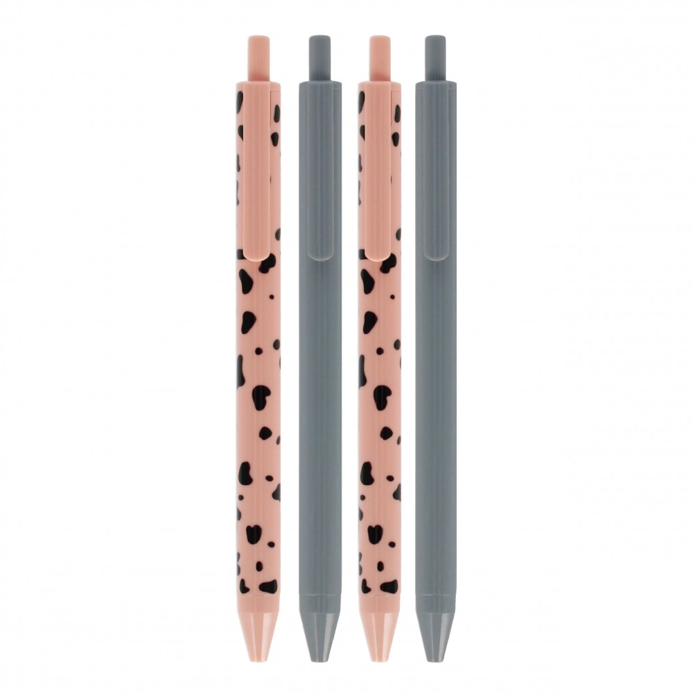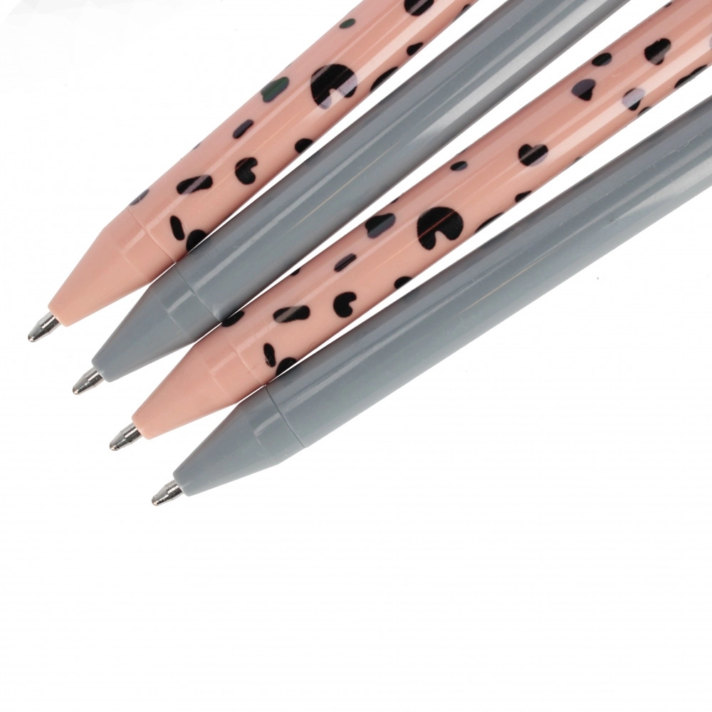 Ovaj set sadrži 4 elegantne kemijske olovke – dvije u decentnoj sivoj i dvije u ružičastoj s dekorativnim uzorkom. Ergonomski, vitak oblik i glatko tijelo olovke osiguravaju udoban hvat i pouzdano pisanje bez prekida. Idealno za bilješke, planiranje i svakodnevni rad.