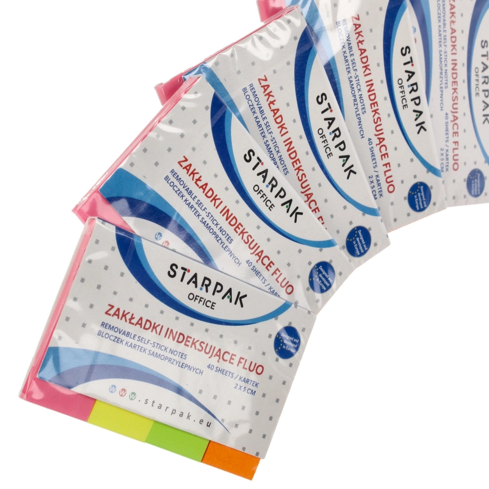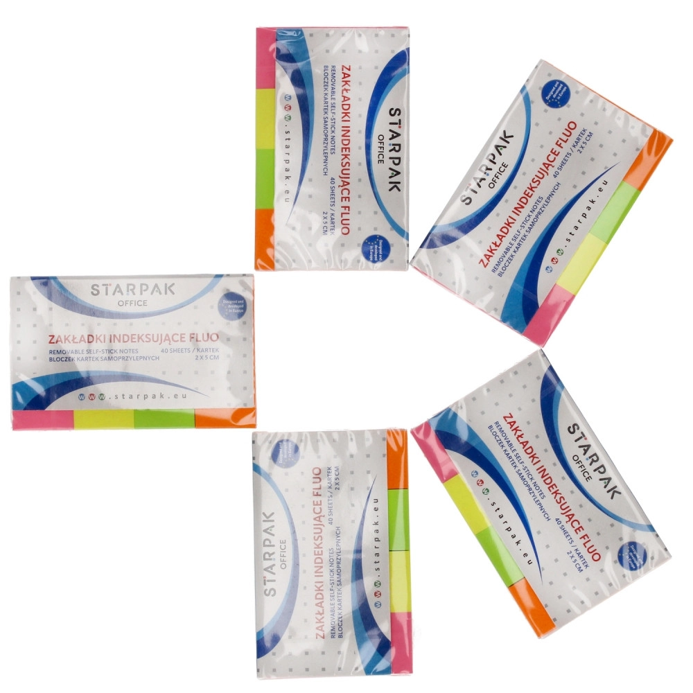 Praktičan set samoljepljivih naljepnica za brzo označavanje i organizaciju dokumenata, bilježnica i ureda. Sadrži 40 listića u 4 upečatljive boje za pregledno razvrstavanje. Idealno za bilješke, označivače i podsjetnike – brzo lijepljenje, dobru vidljivost i kompaktne dimenzije za svaku torbu ili pernicu.
