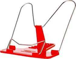 Praktičan stalak za knjige i dokumente s višerazinskim podešavanjem nagiba za udobno čitanje bez držanja u ruci. Lagana i sklopiva konstrukcija s metalnim ramenima stabilno drži knjigu, bilježnicu ili tablet na mjestu. Dostupan u dvije boje – crvenoj i plavoj. Idealan za stol u školi, uredu i kod kuće.