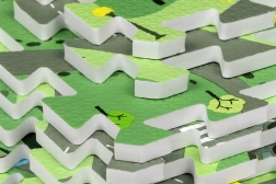 9 dijelova veličine 30 × 30 × 1 cm lako ćete spojiti u površinu 90 × 90 cm, a rubne letvice osigurat će uredan završetak. Dijelovi se mogu povezivati unutar istog modela i također slagati 3D oblike (npr. kocku). Podloga odlično izolira hladnoću s tvrdih podova (parket, pločice, laminat) i apsorbira udarce.