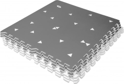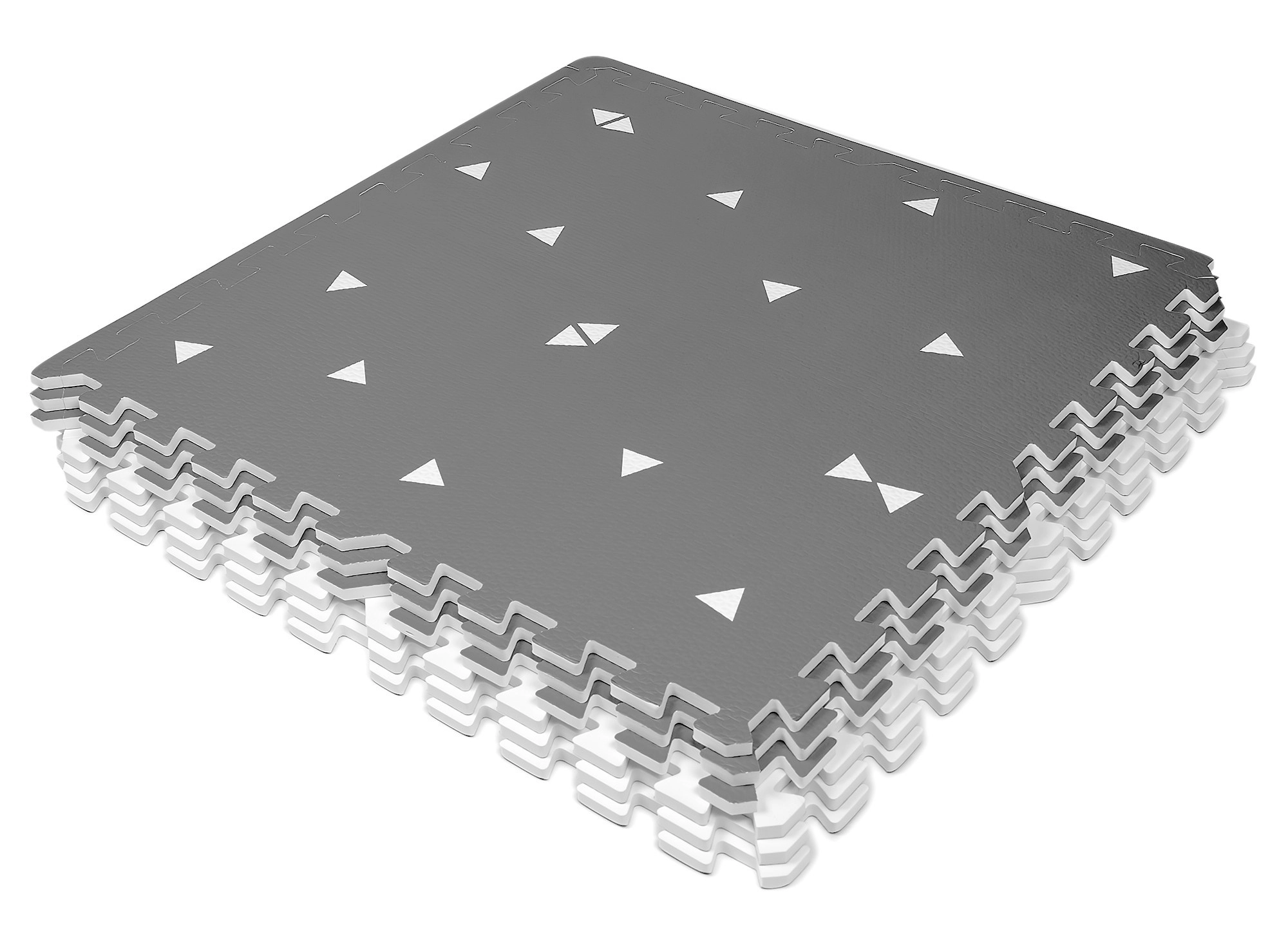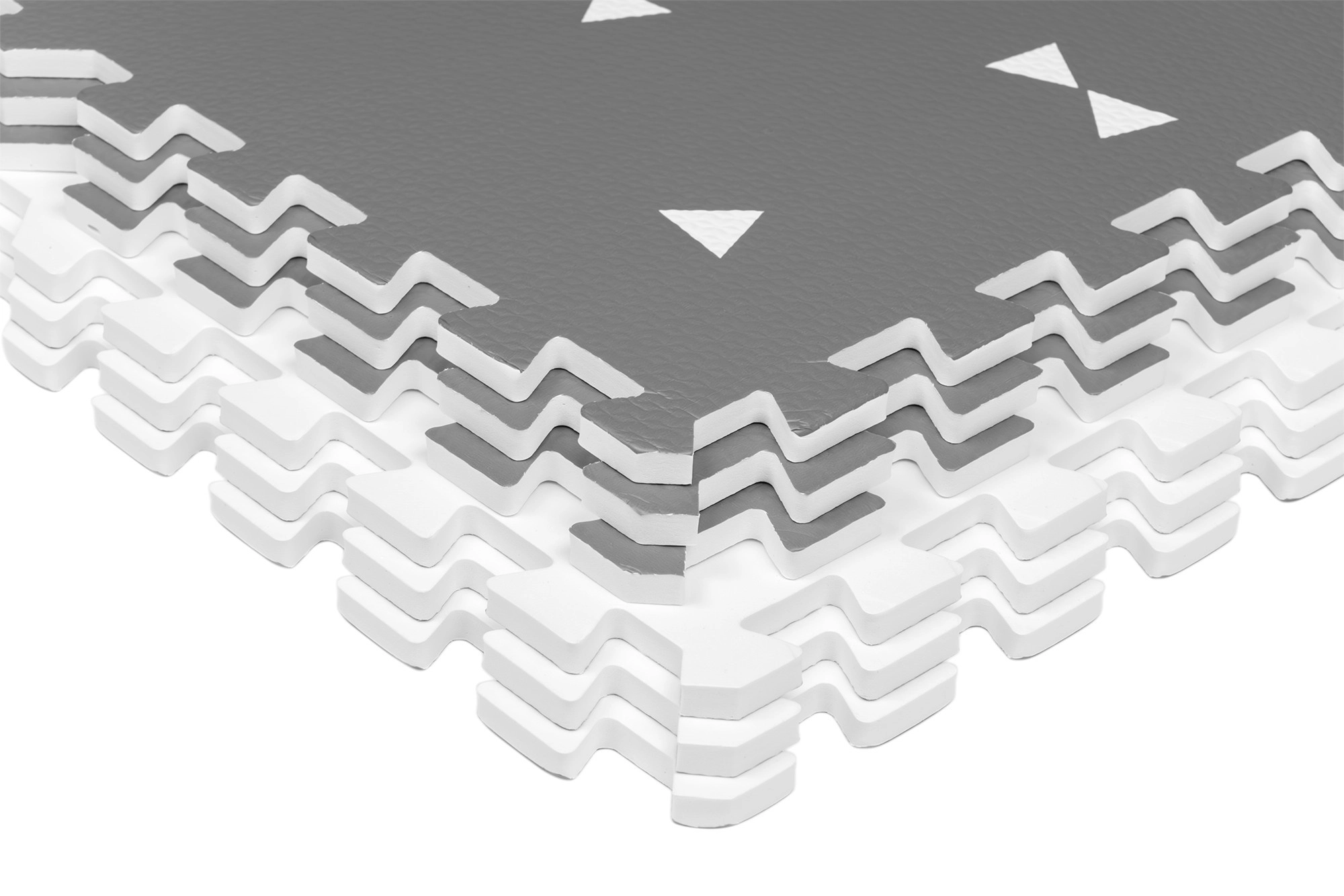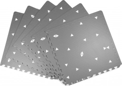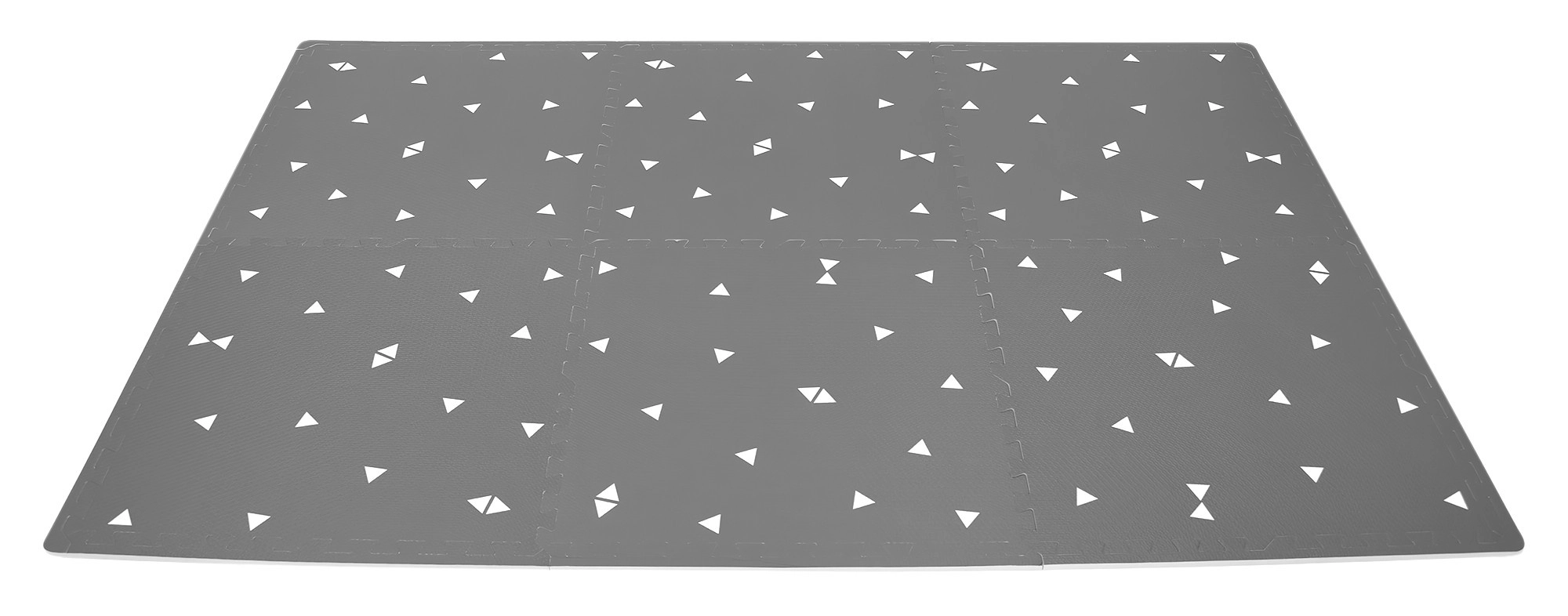 Pjenasta podloga HUMBI stvara za bebe i malu djecu sigurno mjesto za igru, puzanje i prve korake. Zahvaljujući debljini od 1 cm odlično izolira hladnoću i upija udarce na tvrdim površinama poput pločica, parketa ili laminata. Suptilan sivi dizajn s trokutima uklapa se u moderne interijere.
