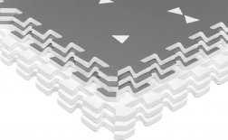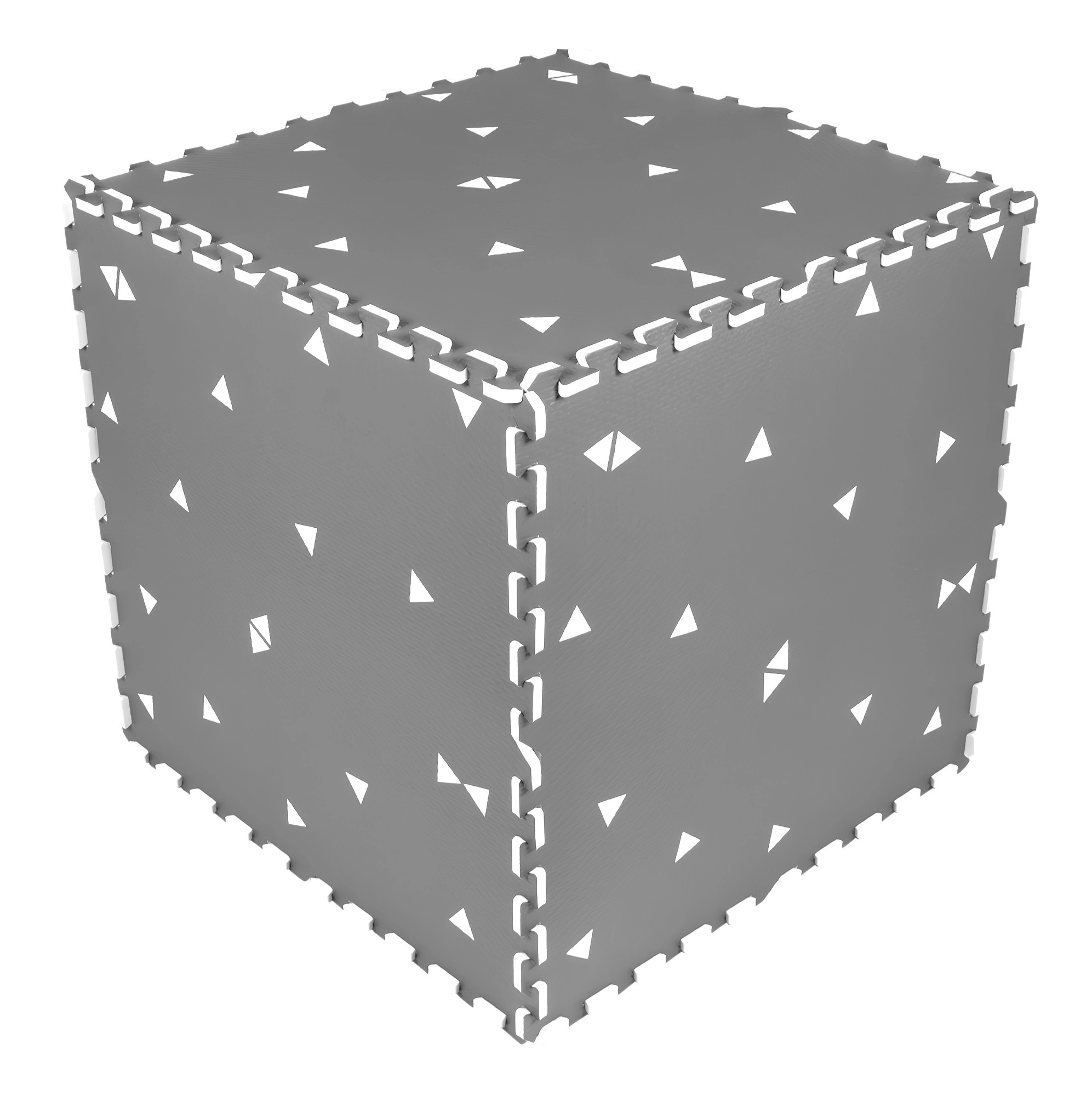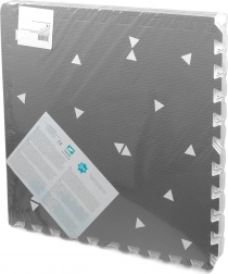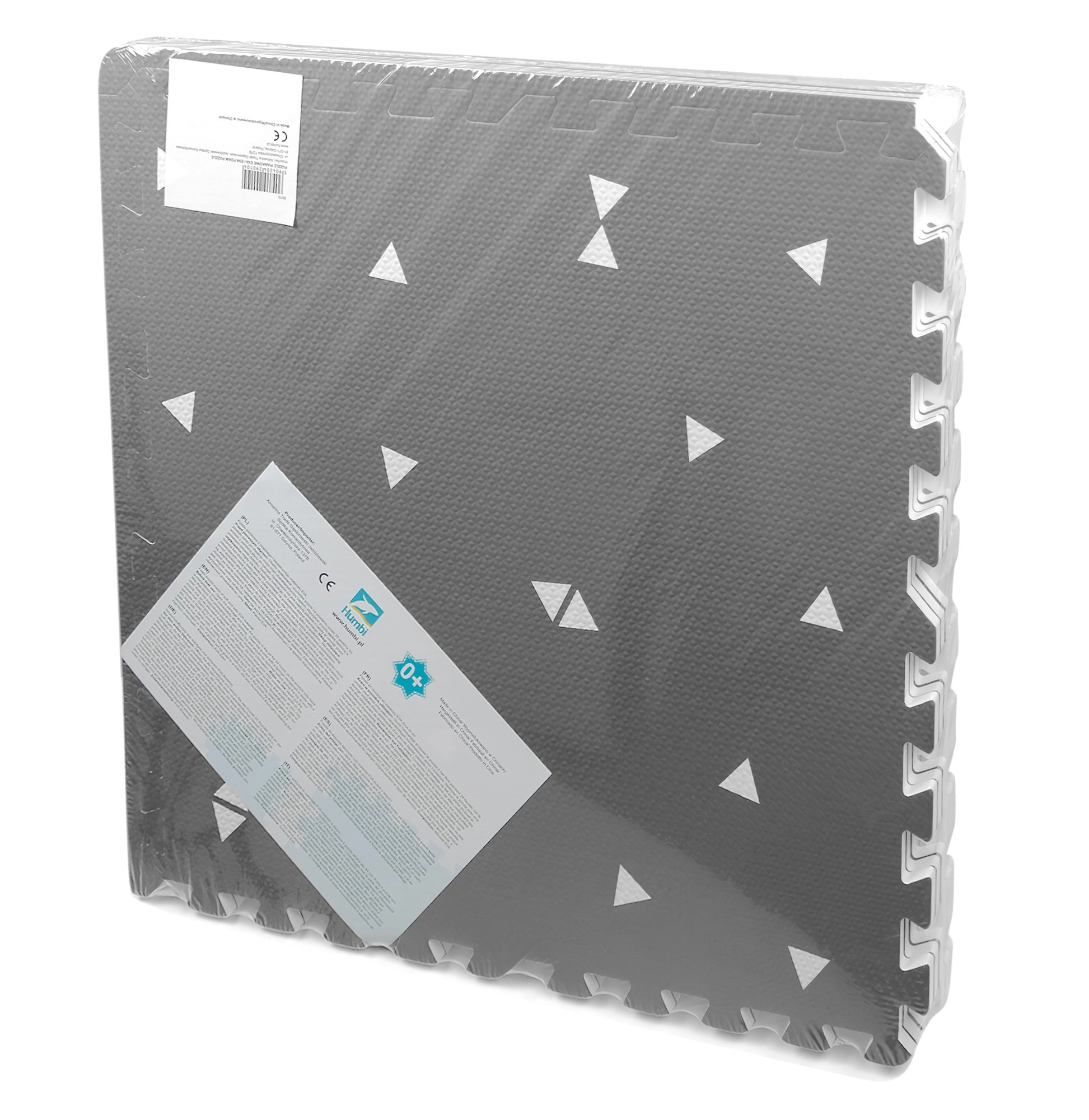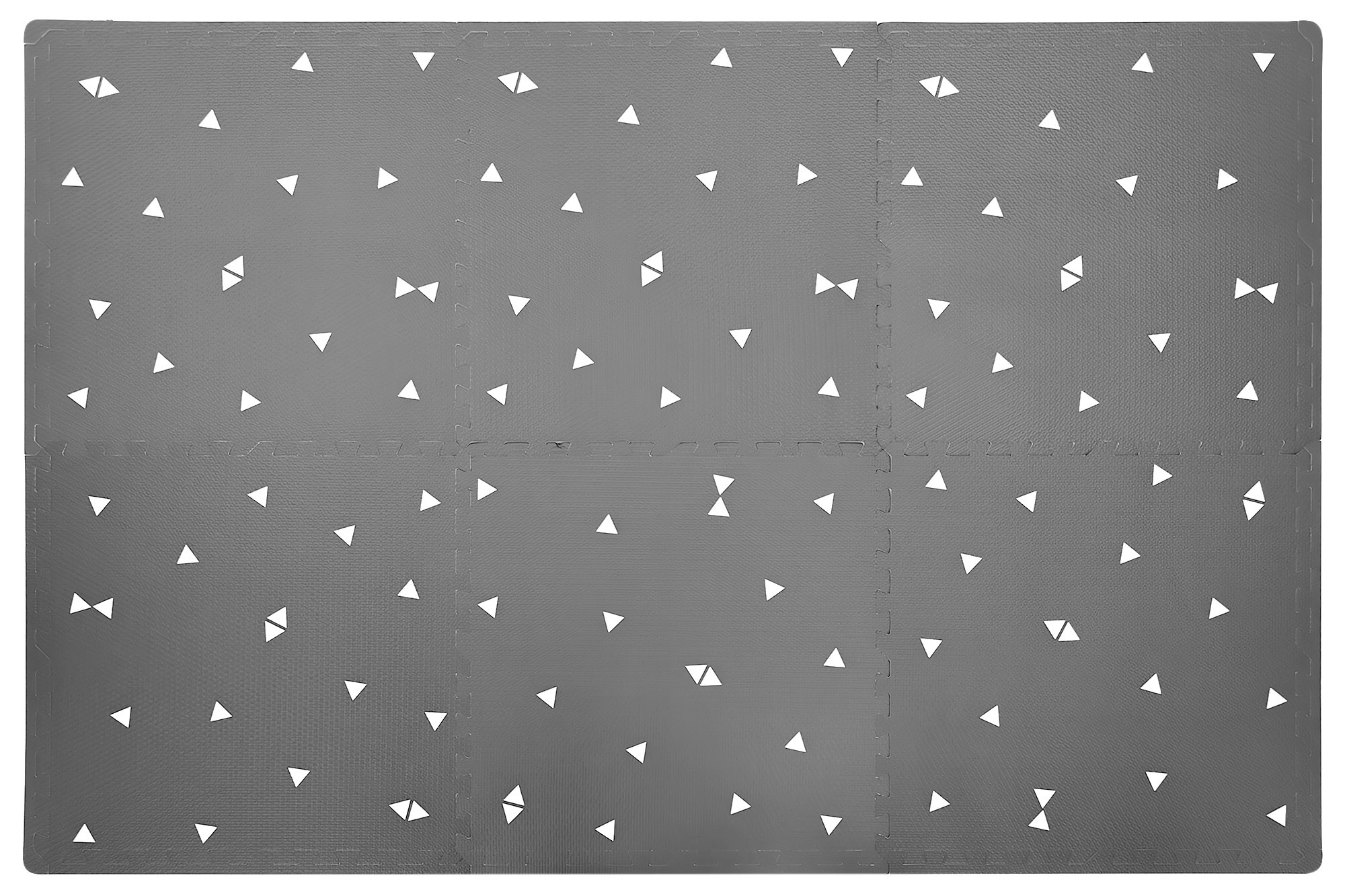 Pjenasta podloga HUMBI stvara za bebe i malu djecu sigurno mjesto za igru, puzanje i prve korake. Zahvaljujući debljini od 1 cm odlično izolira hladnoću i upija udarce na tvrdim površinama poput pločica, parketa ili laminata. Suptilan sivi dizajn s trokutima uklapa se u moderne interijere.