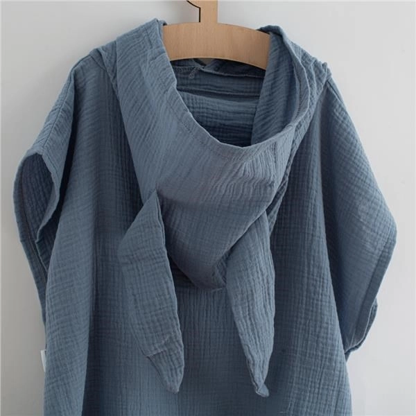 Praktični bočni drukeri omogućuju stvoriti otvor za ruku ili ostaviti slobodan kroj prema potrebi. Pončo ugodno zagrijava dijete nakon kupanja, a ujedno služi kao nježan ručnik. Koristit ćete ga tijekom cijele godine – kod kuće u kupaonici, na plaži i na bazenu.