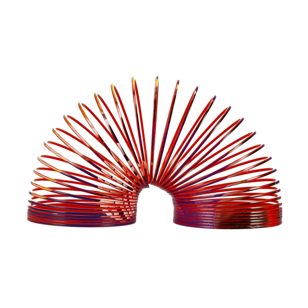 Opruga glatko silazi niz stepenice, skače između dlanova i uči djecu ritmu i koordinaciji pokreta.
